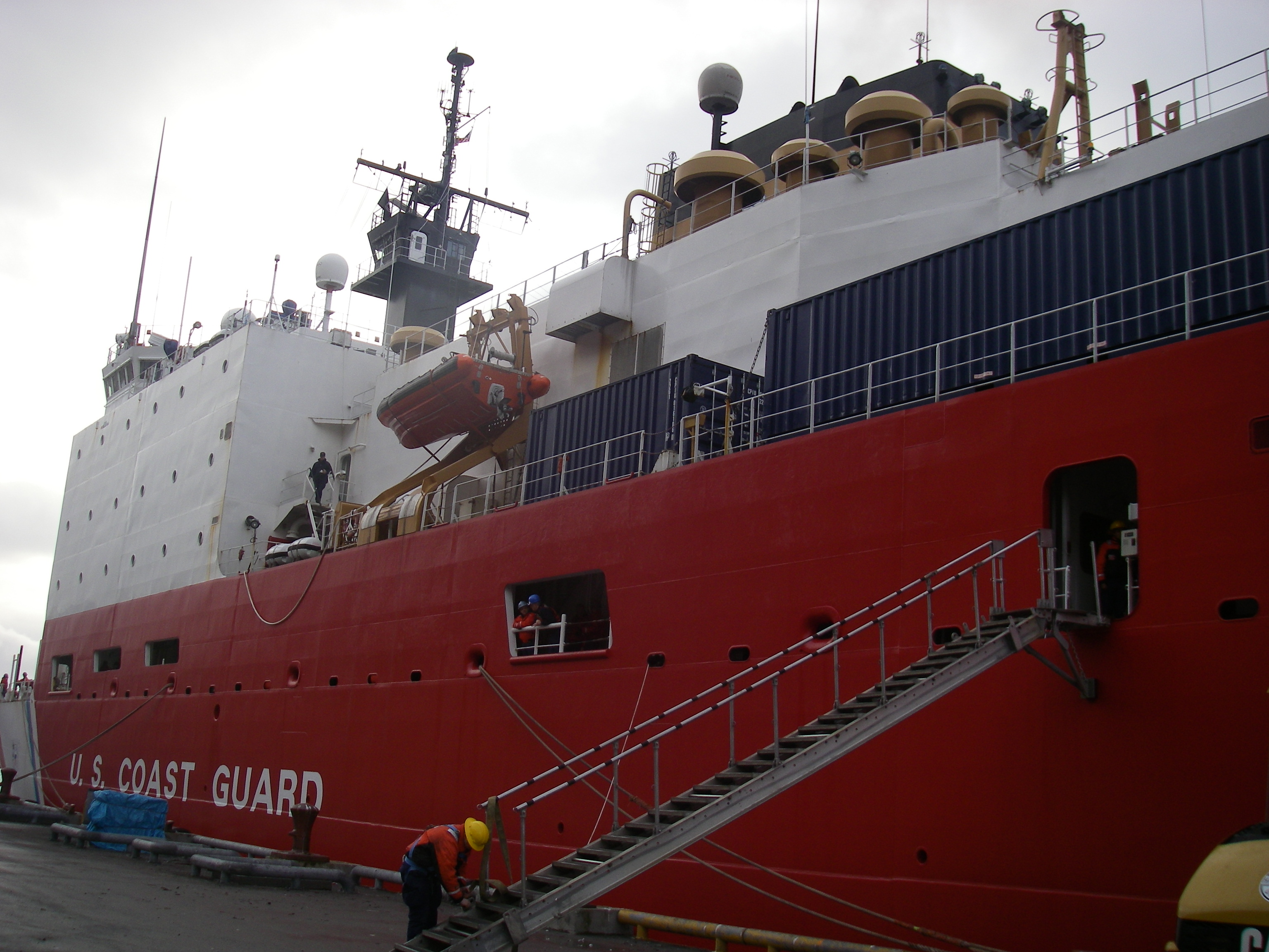 The USCGC Healy icebreaker docked in Unalaska, Alaska, at the International Port of Dutch Harbor.