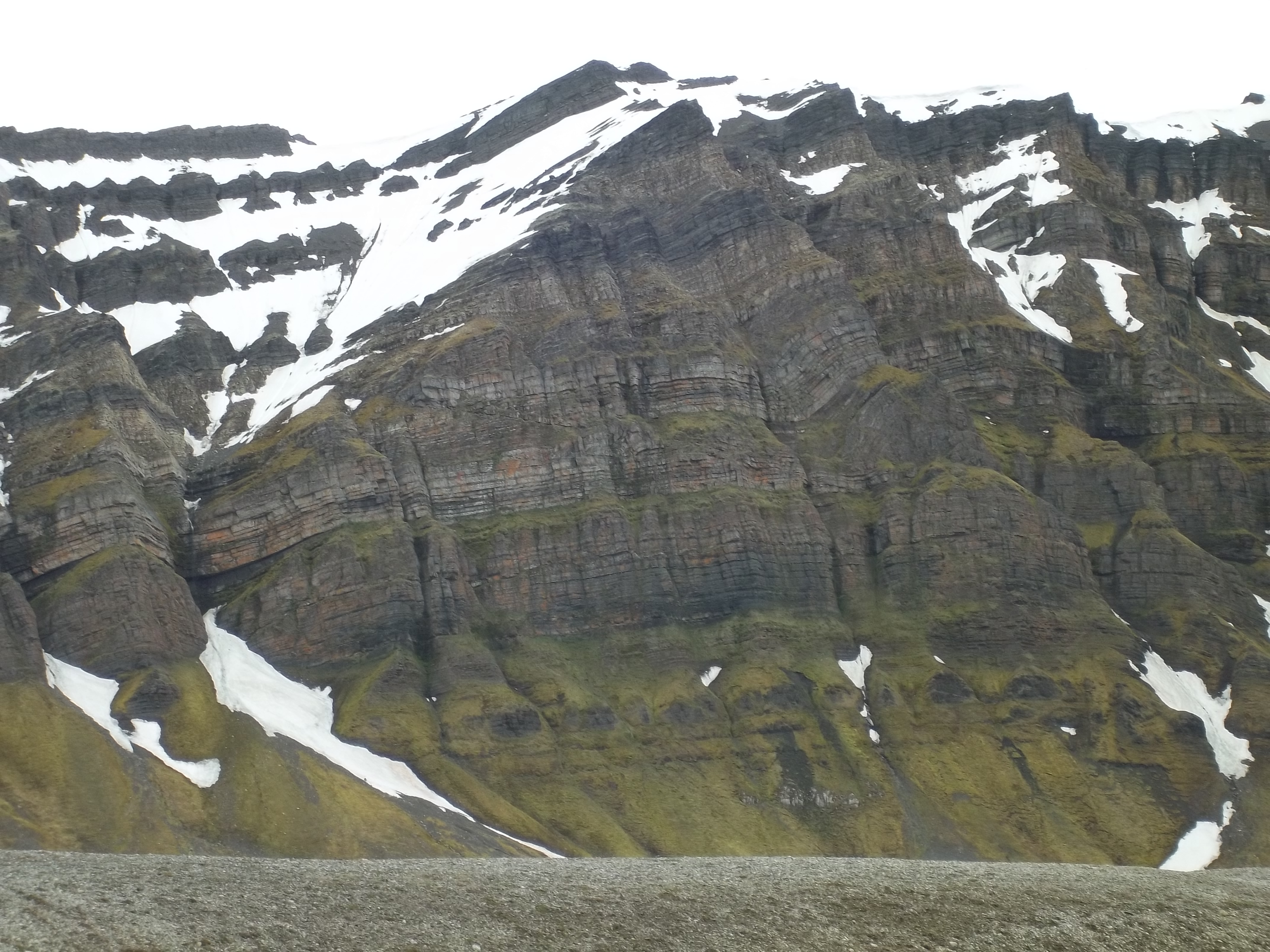 A view of a bedrock outcropping as viewed from the the Linne valley floor. Isfjord Radio at Kapp Linne, Svalbard.