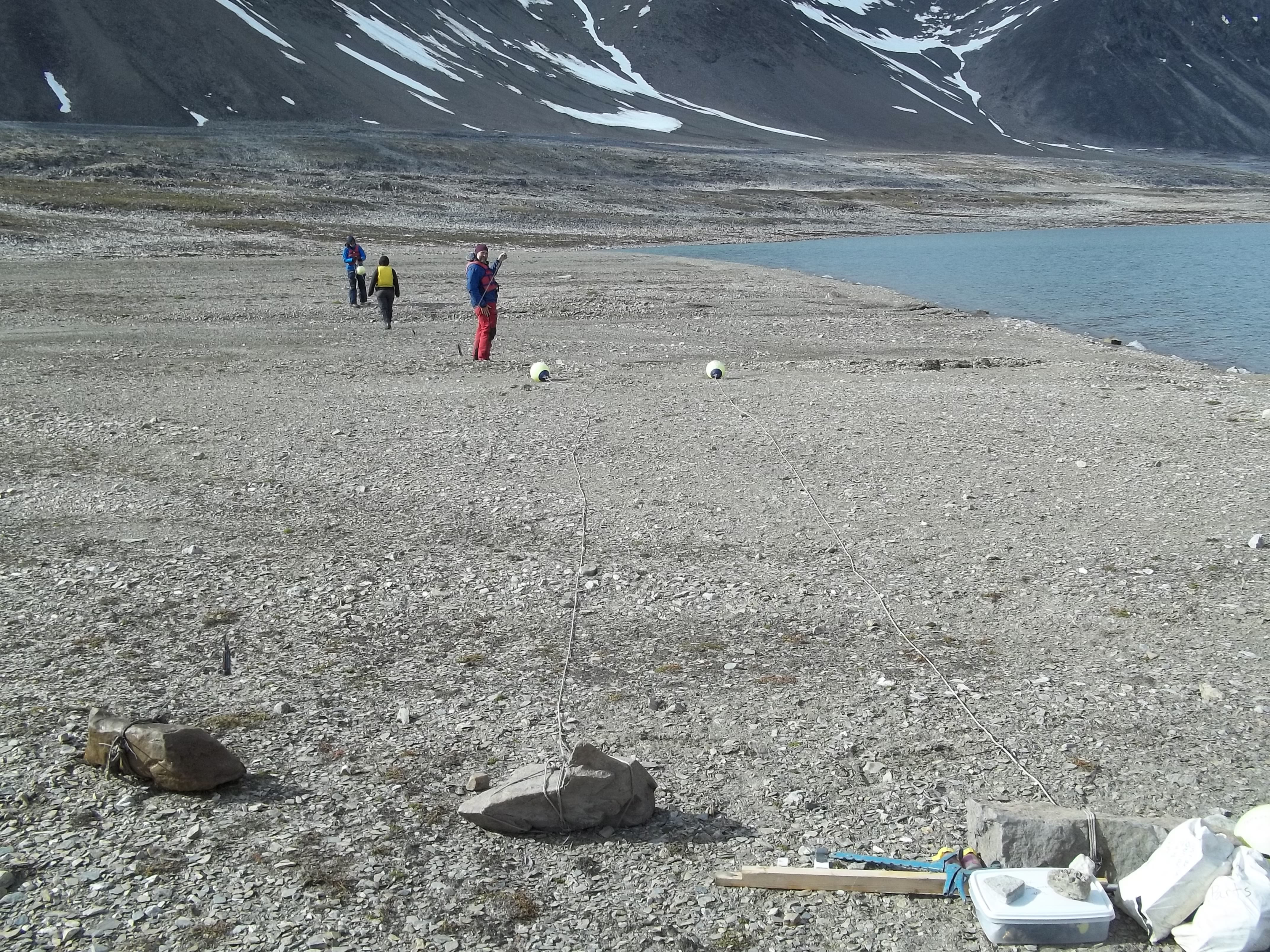 Moorings laid out on the south shore of Linnevatnet. Isfjord Radio at Kapp Linne, Svalbard.