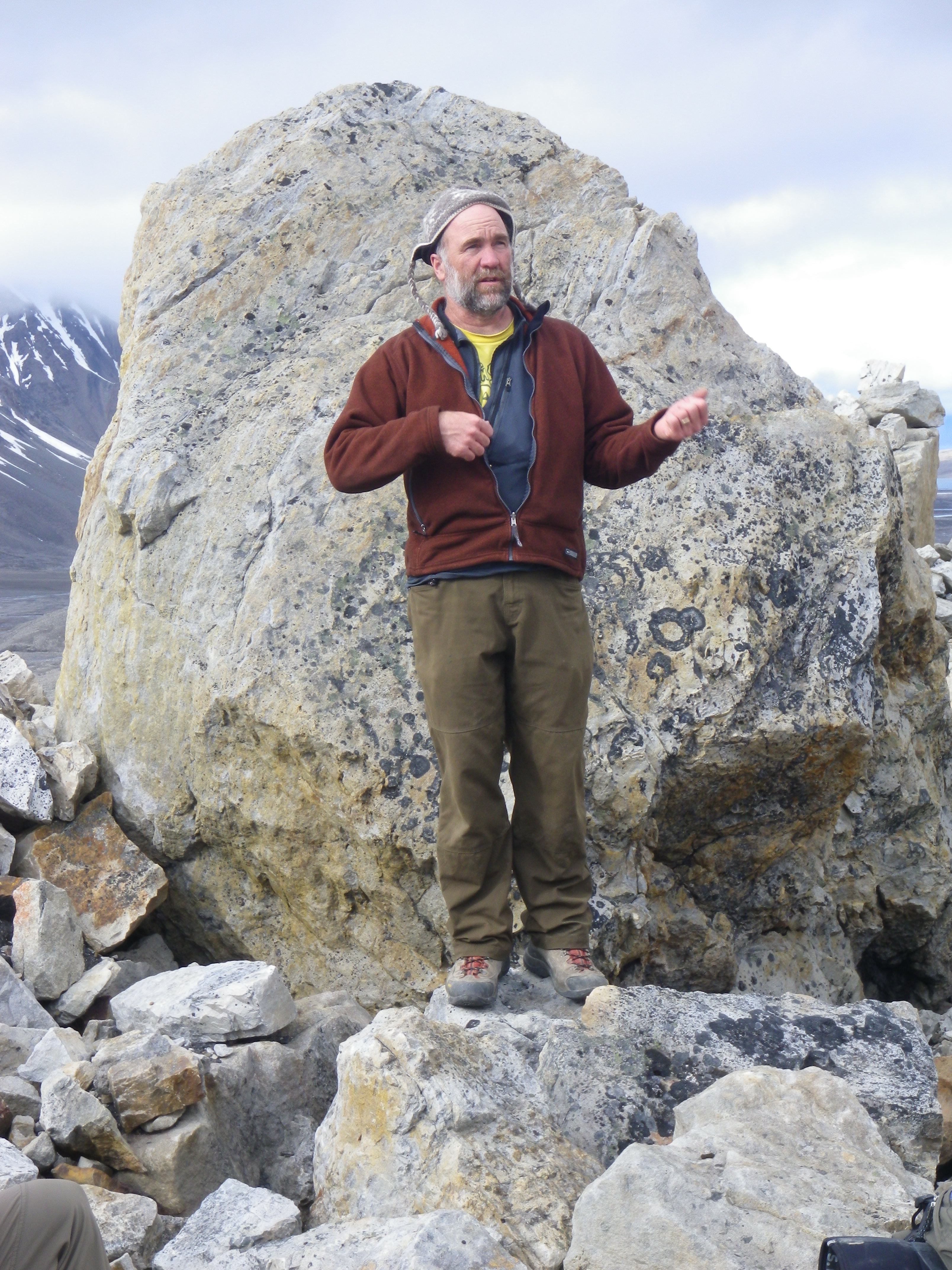 Steve Roof lectures on lichenometry. Isfjord Radio at Kapp Linne, Svalbard.
