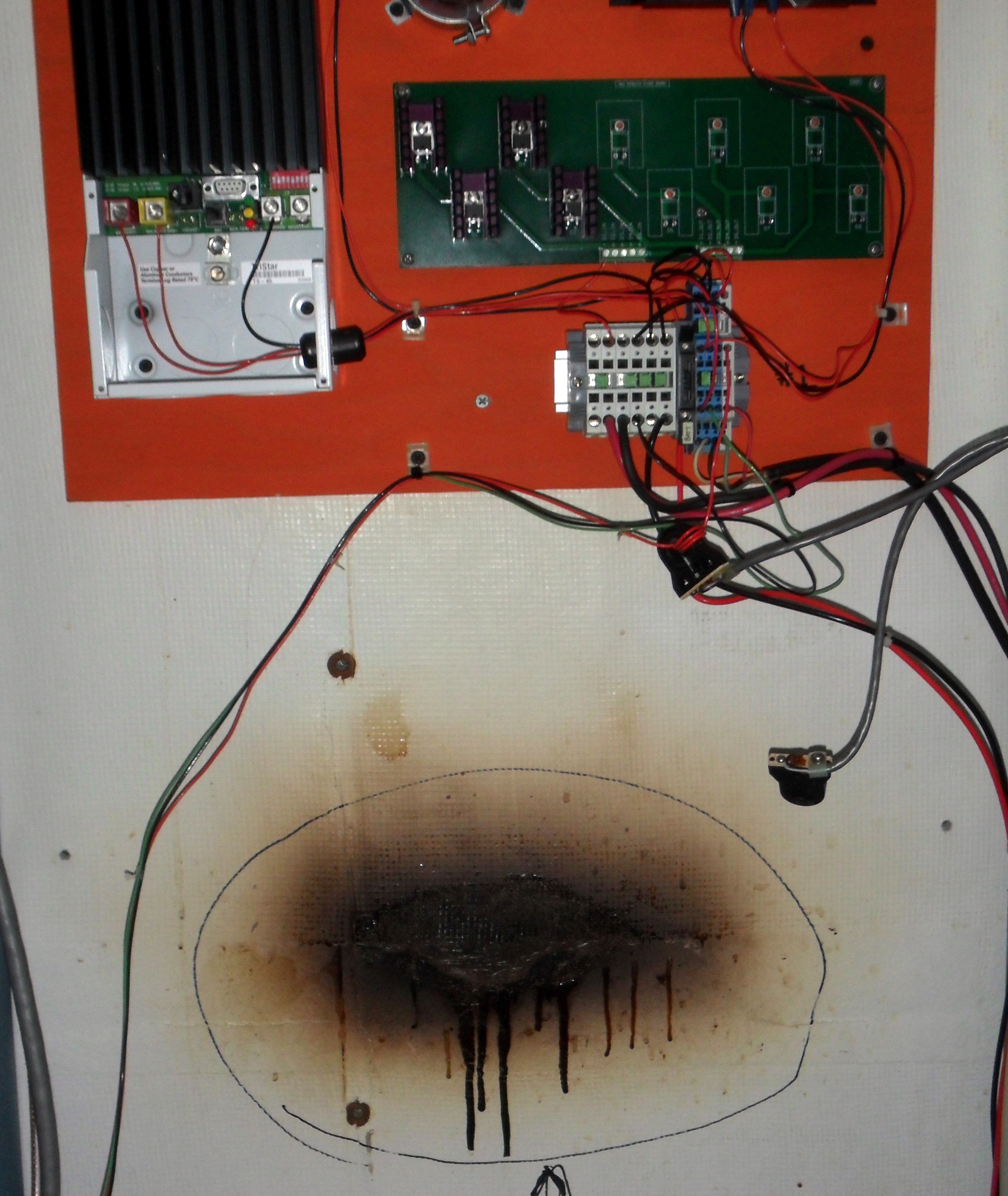 Tim Spuck: "This is the result of the previous power management system's inability to handle the electrical current generated by the wind turbine during extremely high wind conditions. The unit was getting so hot that it was melting the wall it was mounted on. The new system is much more robust and will prevent this from happening in the future." Automatic Geophysical Observatory (AGO) #2 Site on the East Antarctic Plateau.