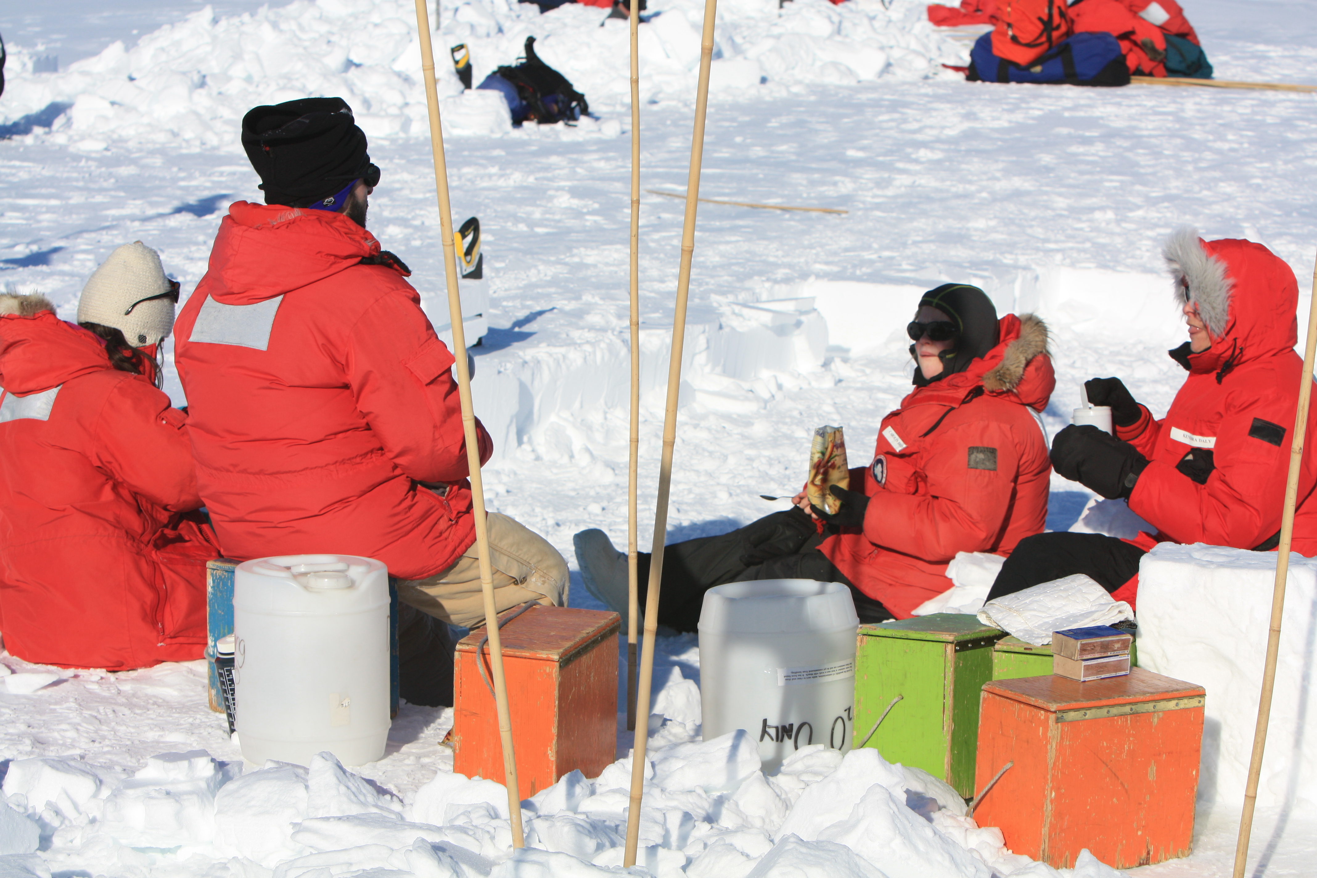 Mike LeBaron: "Eating dinner on the ice at Happy Camper School." McMurdo Station, Antarctica.