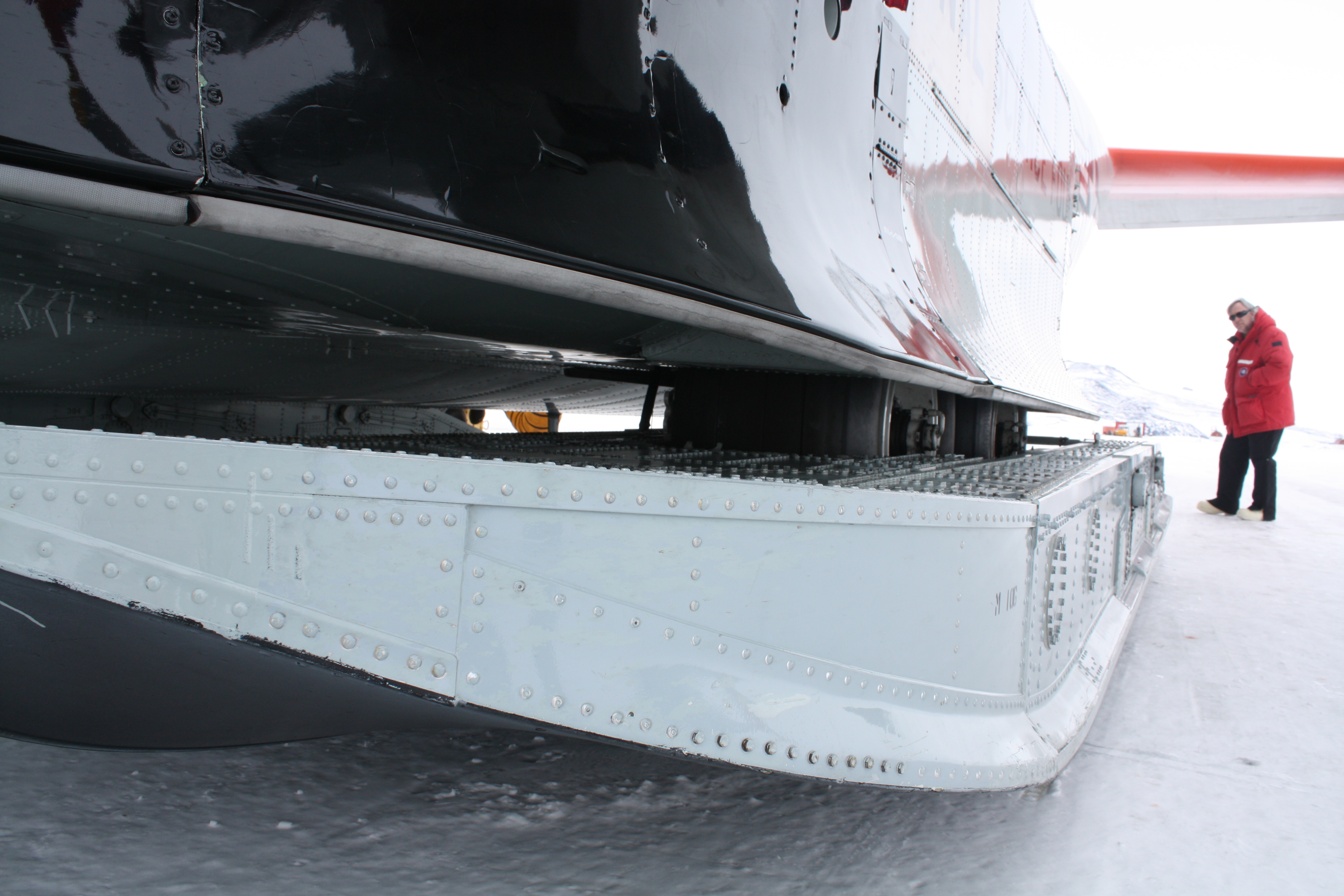 Mike LeBaron: "This is one of the three skis that the LC-130 can land on in snow. The wheels are also there to allow landing on hard surfaces." McMurdo Station, Antarctica.