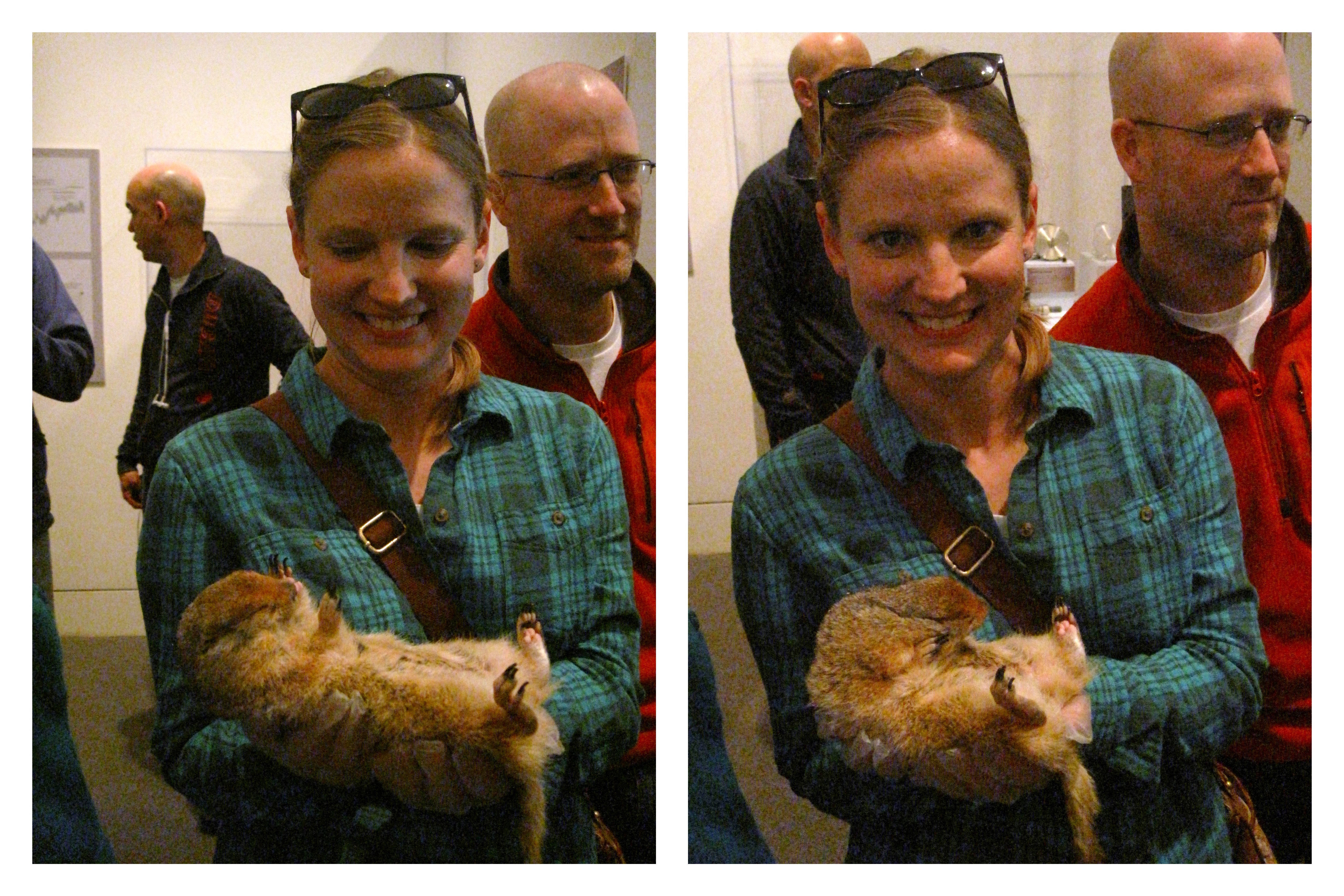 Alicia Gillean holds a hibernating Arctic ground squirrel at the Museum of the North in Fairbanks, Alaska.