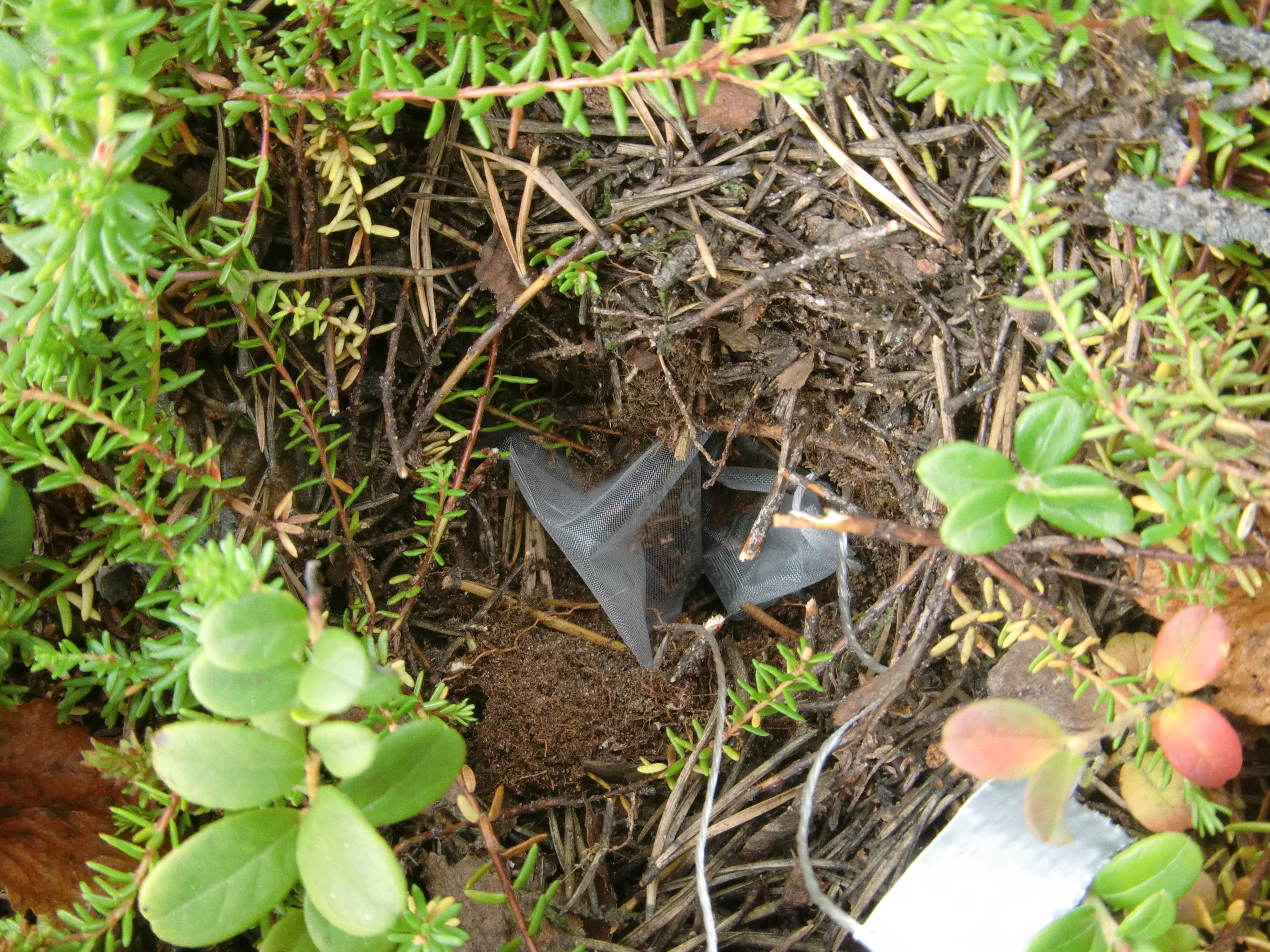 Once the litterbags are at the correct depth, the soil is gently pushed back to cover the bags. Kevo Research Station, Finland.