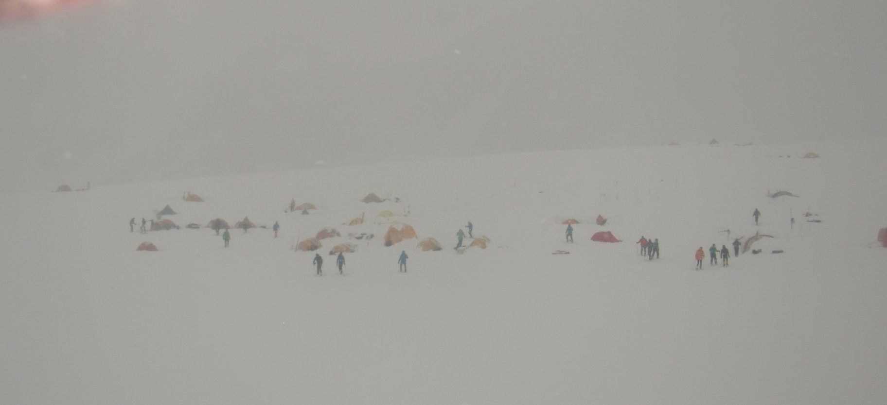 Ken Williams: "Basecamp really looks like a small town and it is quite surreal when visibility gets cut due to snow." Basecamp on Kahiltna Glacier, Denali National Park, Alaska.