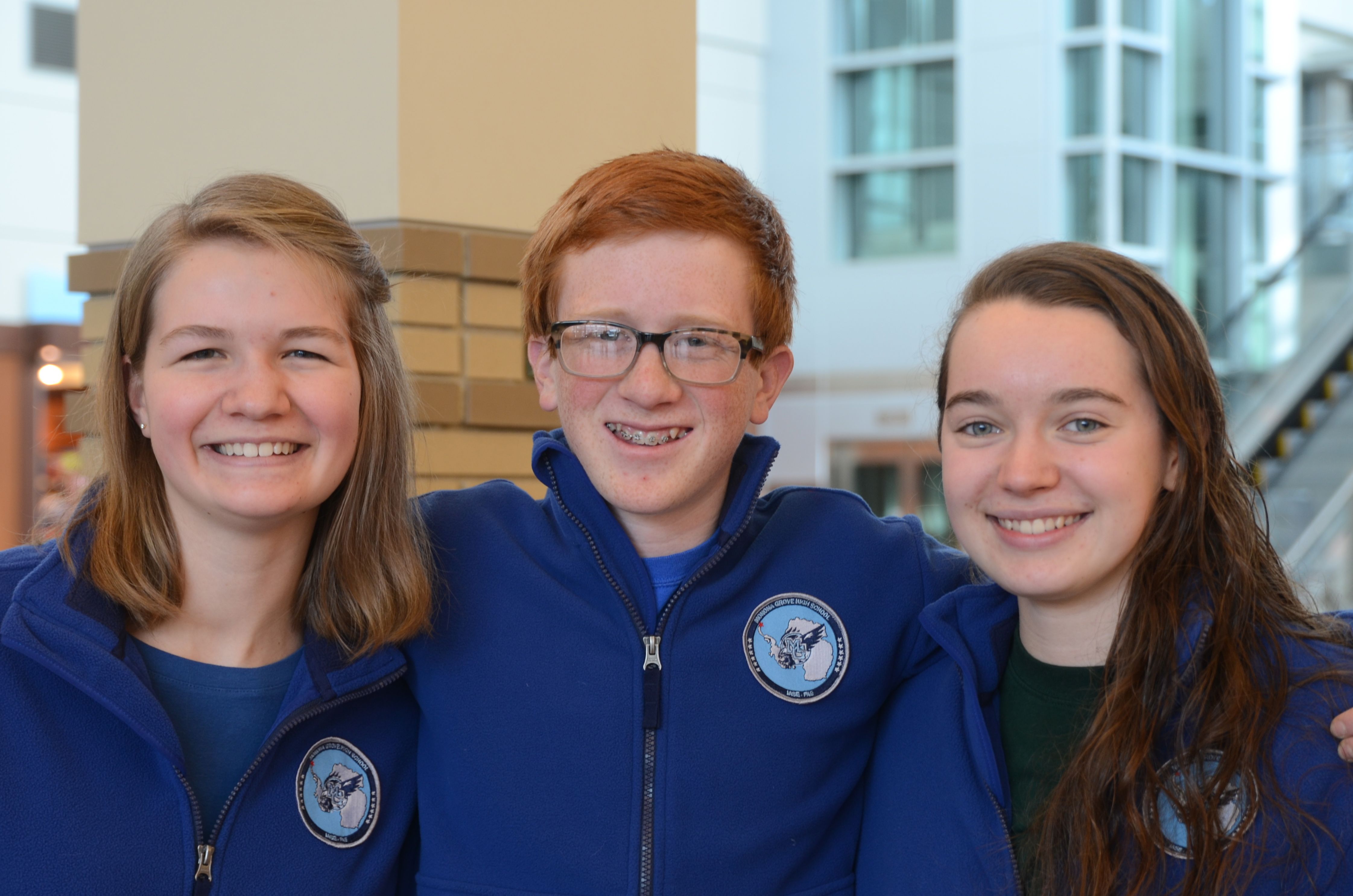 Claire Hacker, Luke Maillefer, and Anna Caldwell-Overdier are ready to depart from Madison's airport. Dane County Regional Airport, Madison, Wisconsin.
