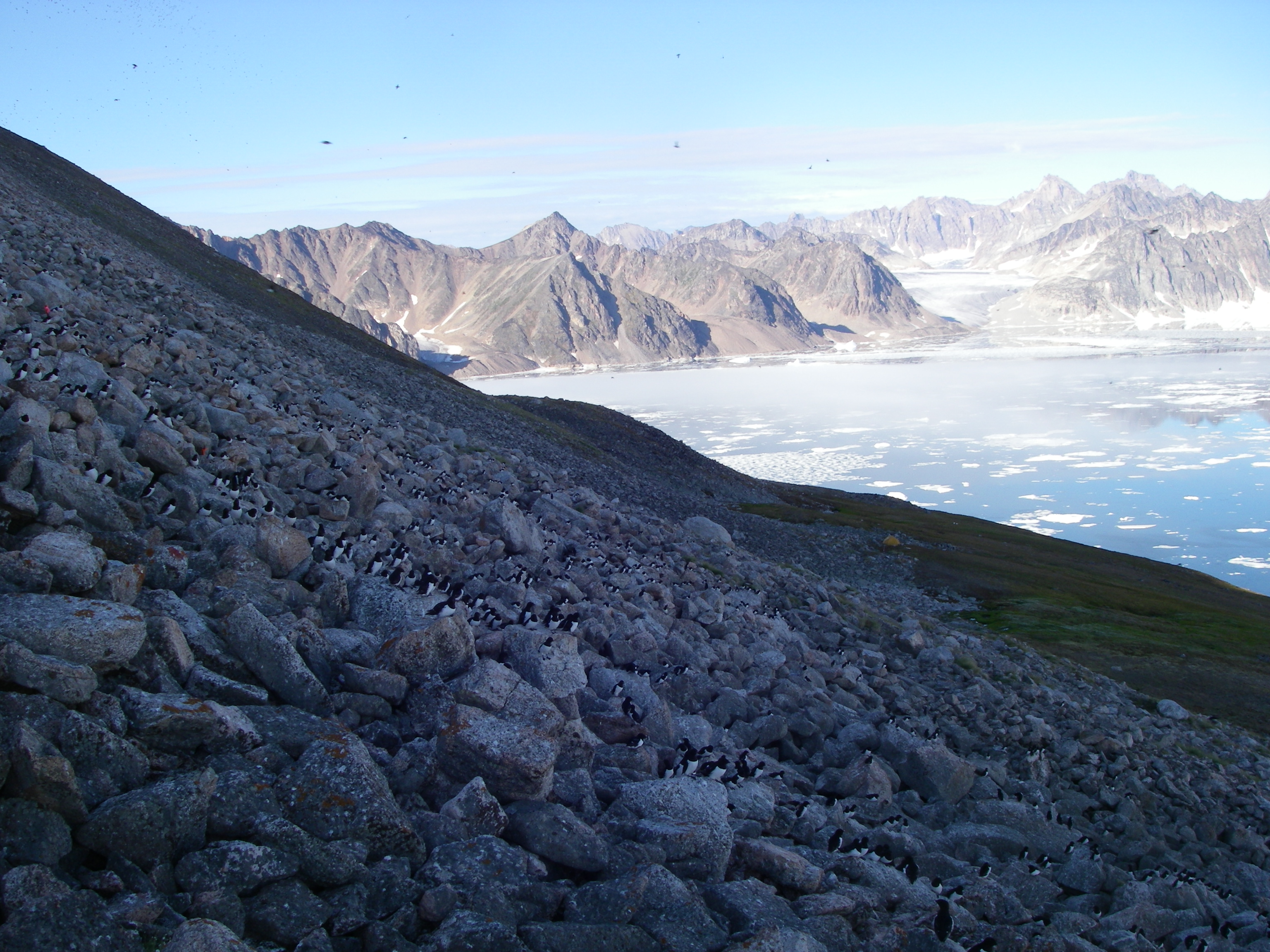 Kording Fjord in the morning while the Little Auk colony was still shaded. Kap Hoegh, Greenland.