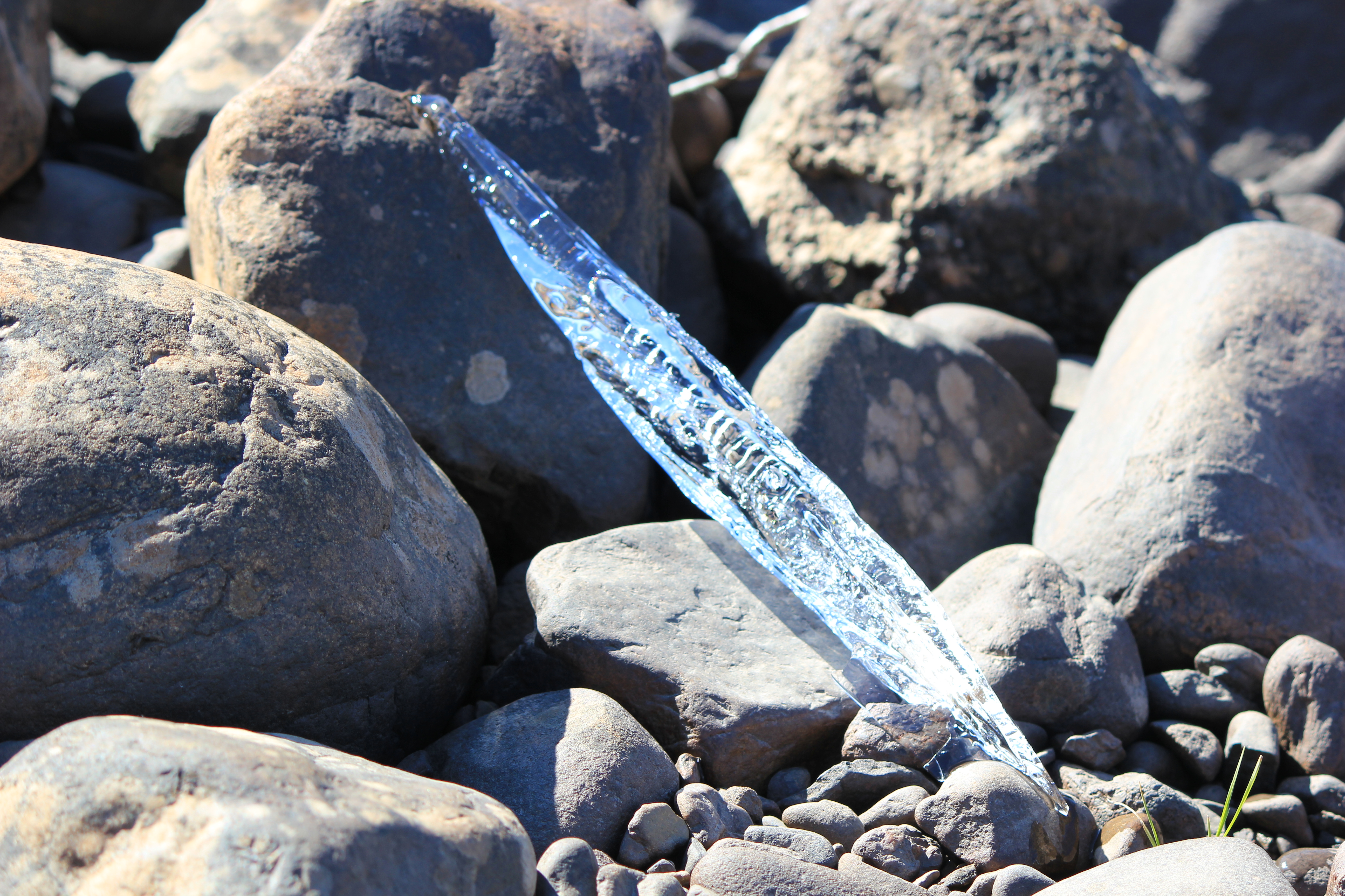 A single piece of candle ice on the rocks next to Toolik Lake. Toolik Field Station, Alaska.