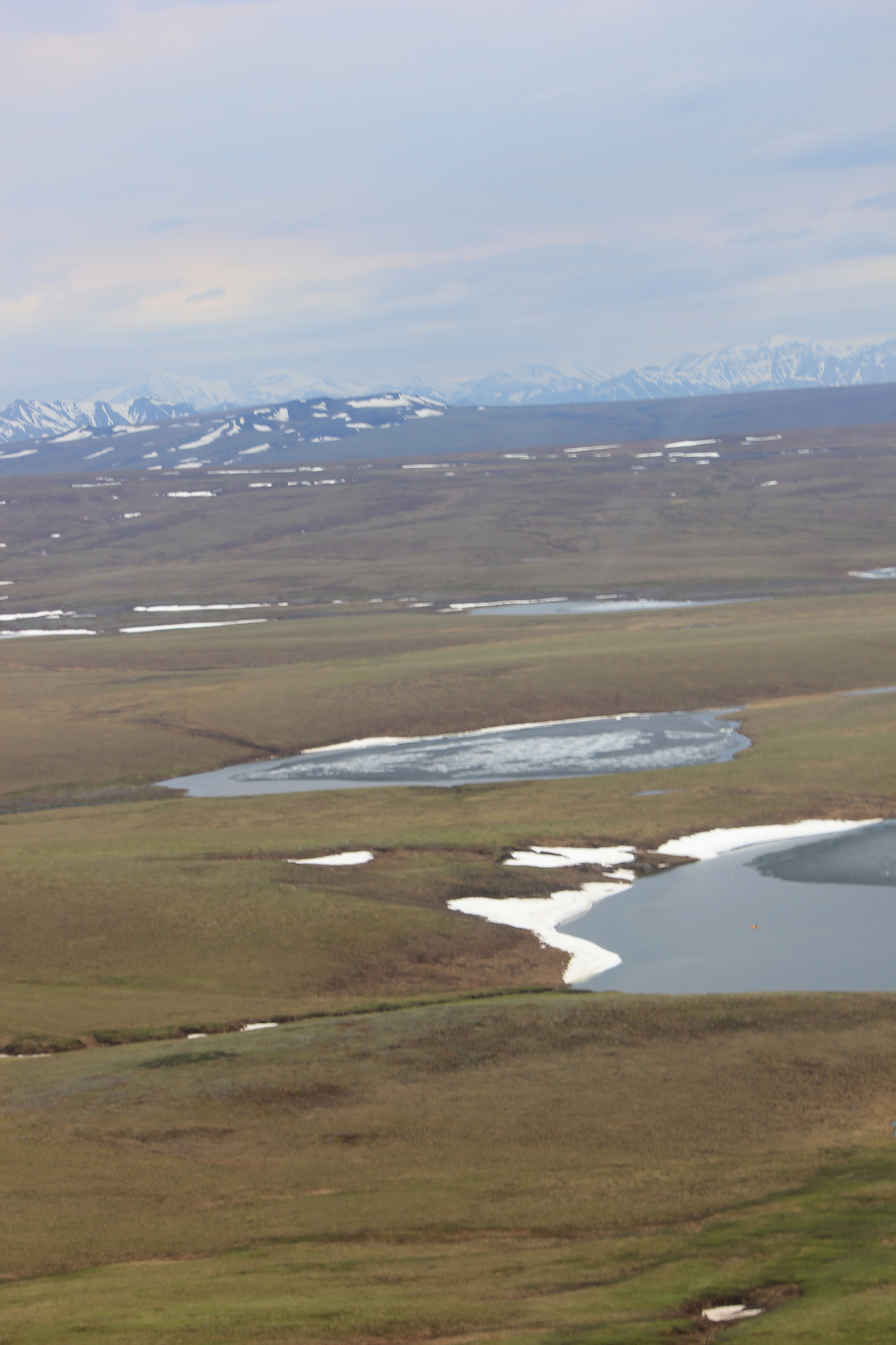 The Brooks Range, waterways, and snow patches, as seen from a helicopter. Toolik Field Station, Alaska.