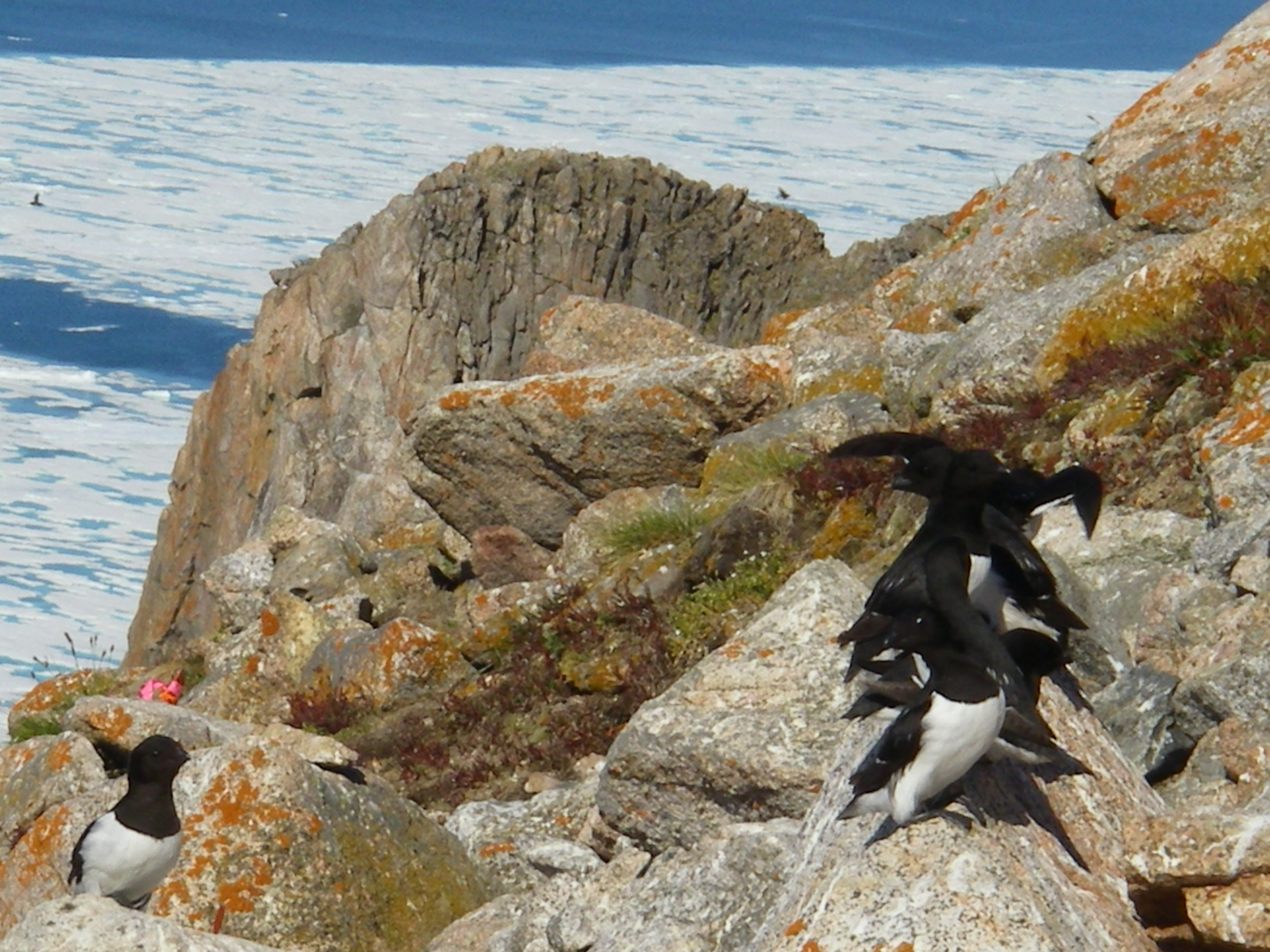 A row of adult Little Auks competing for the best perch position over the Greenland Sea. Kap Hoegh, Greenland.