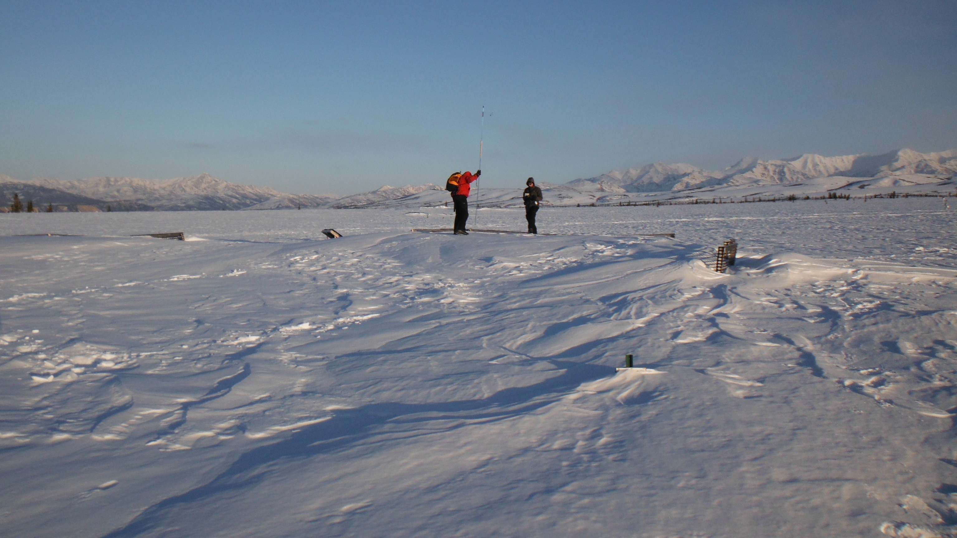 Tom Lane measures snow depth at the warming site. At the CiPEHR site, near Healy, Alaska.