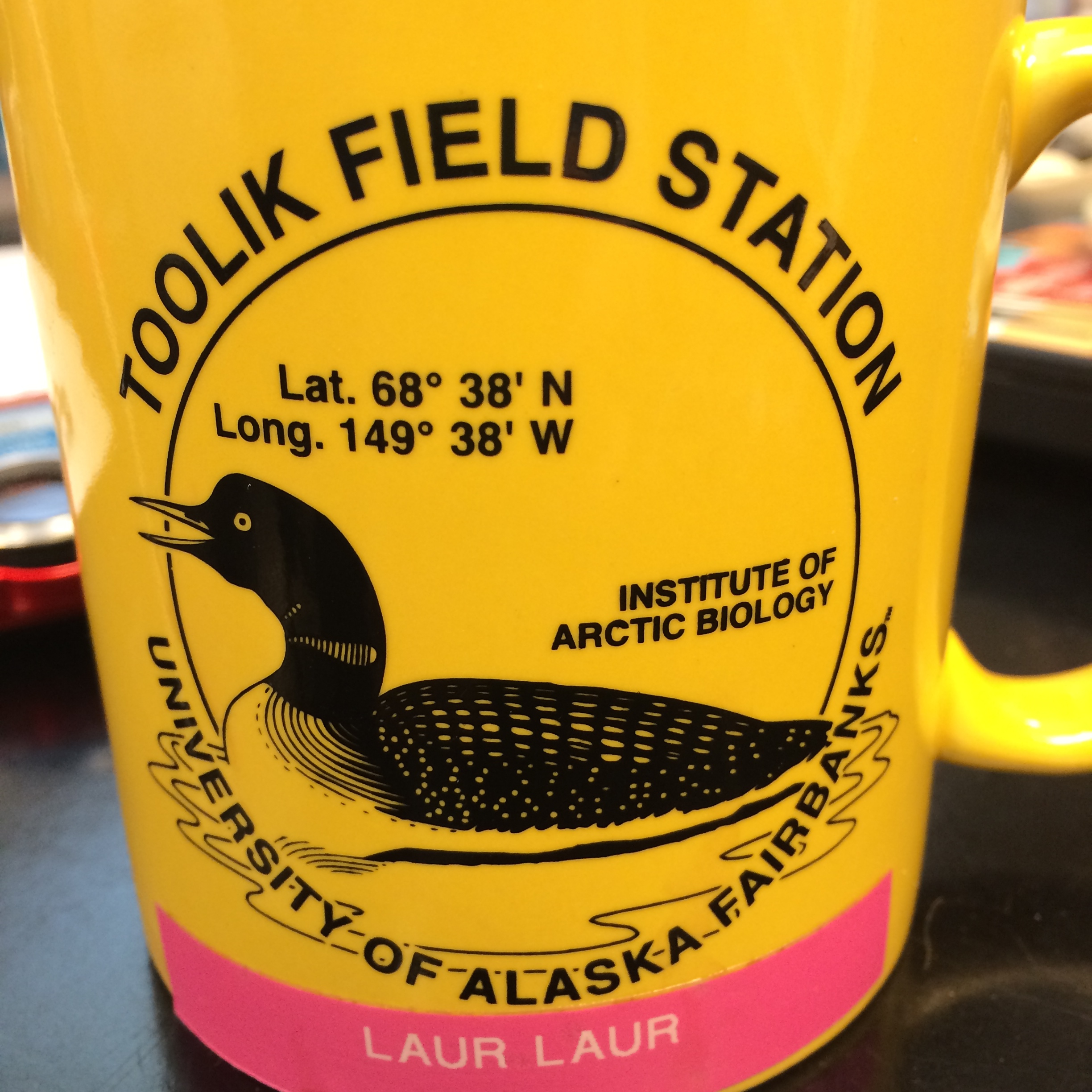 Lauren Watel: "Everyone is given a Toolik mug to use for their various beverages throughout our time here. We have to choose a nick name to keep our mugs straight. Laur Laur is what my aunt Sandy calls me." Toolik Field Station, Alaska.