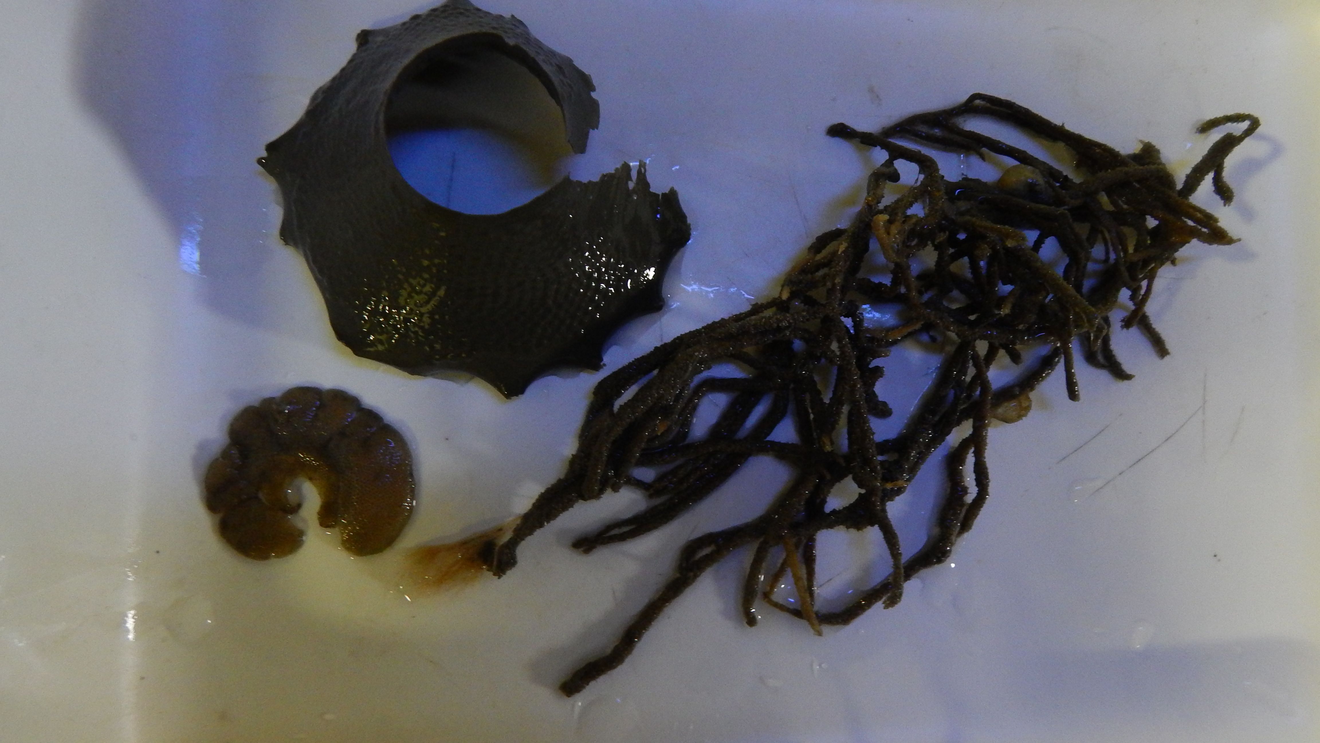 Bryozoans and a snail egg case. Aboard the USCGC Healy icebreaker on the Chukchi Sea.