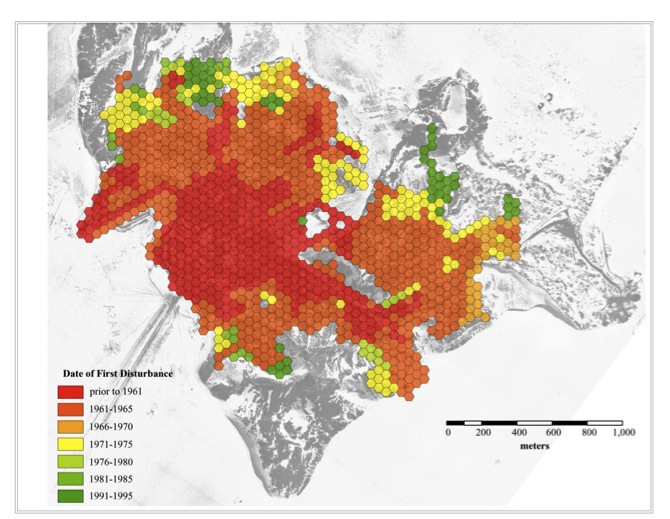A map of human disturbances over time at McMurdo Station, Antarctica. Map courtesy of Andrew Klein.
