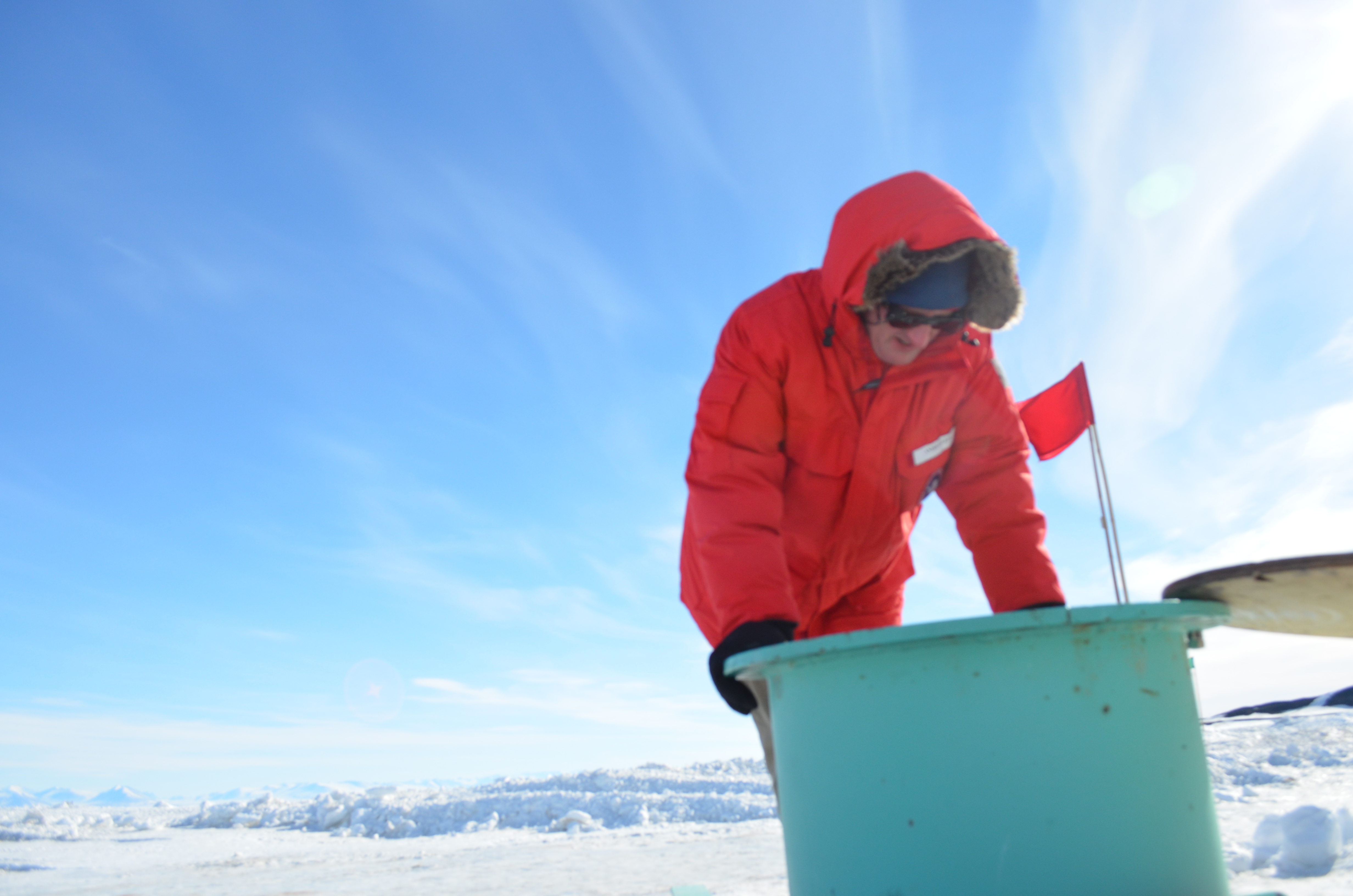 Andrew Klein begins his descent into the observation tube. McMurdo Station, Antarctica.