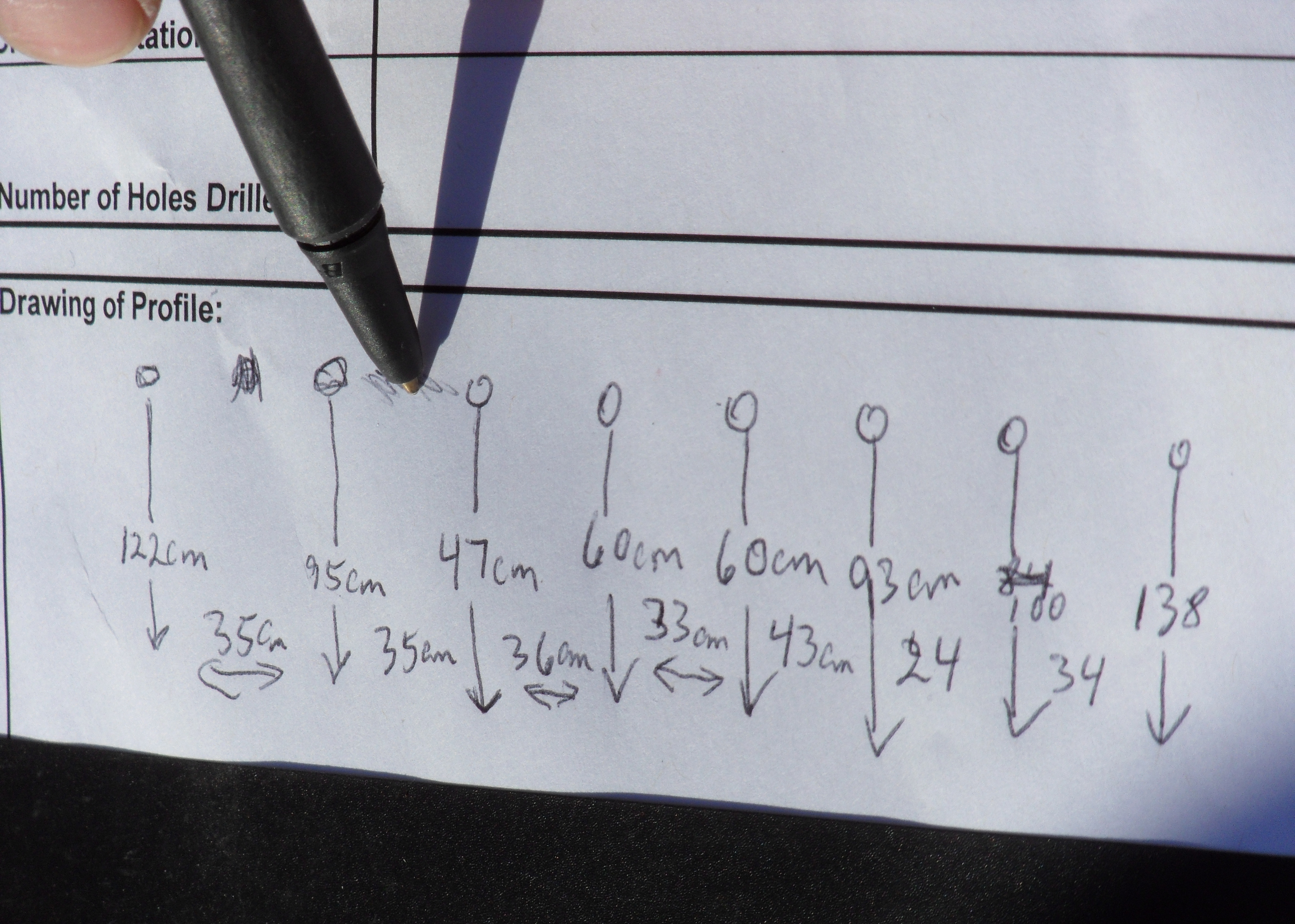 After drilling and recording various sea ice depths, Corey Rubinfield shows a profile of the sea ice using the data. At Sea Ice Training in McMurdo Station, Antarctica.