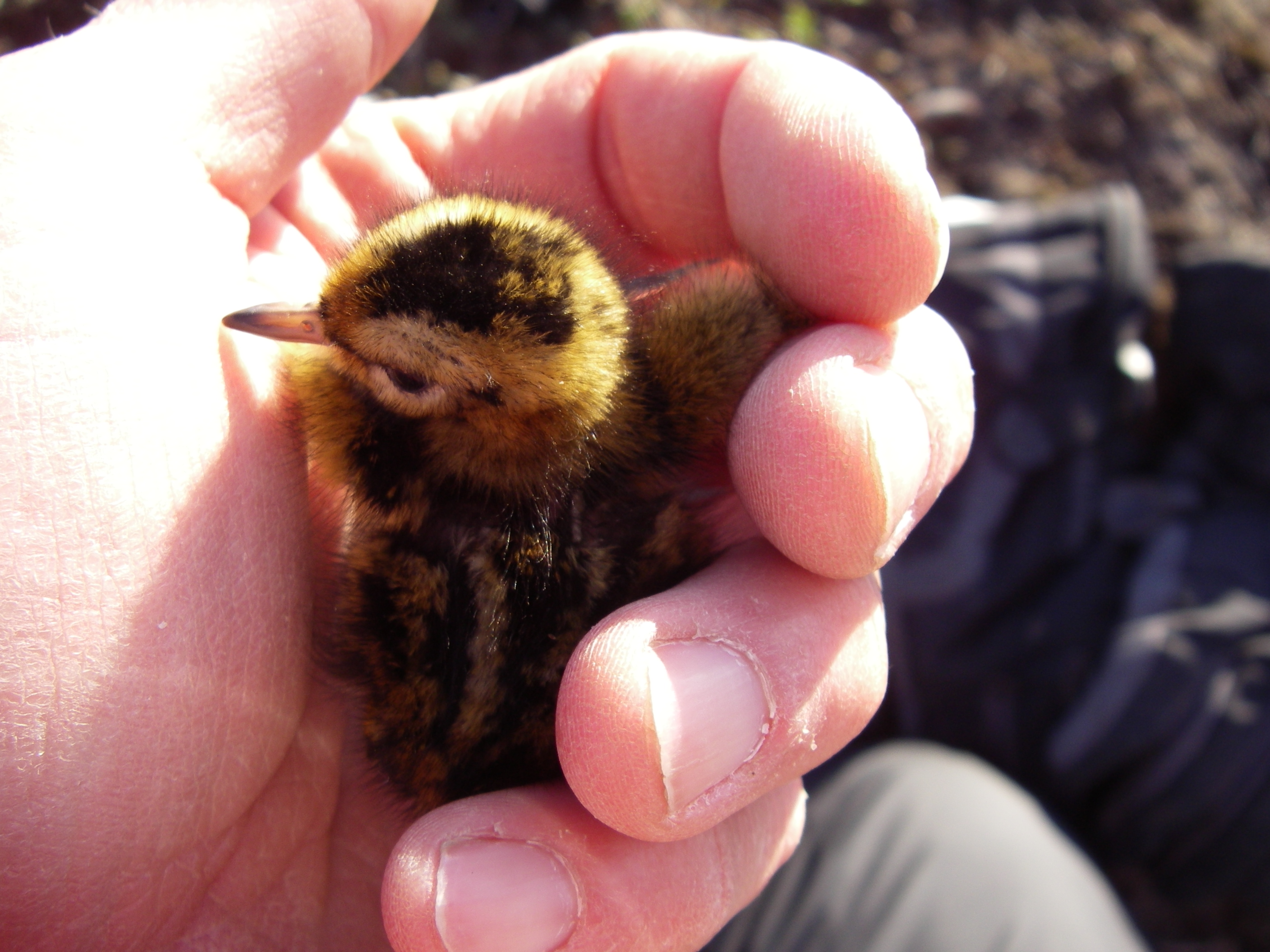 Rob Wilder holds one of the phalarope chicks that were being banded near Barrow, Alaska.