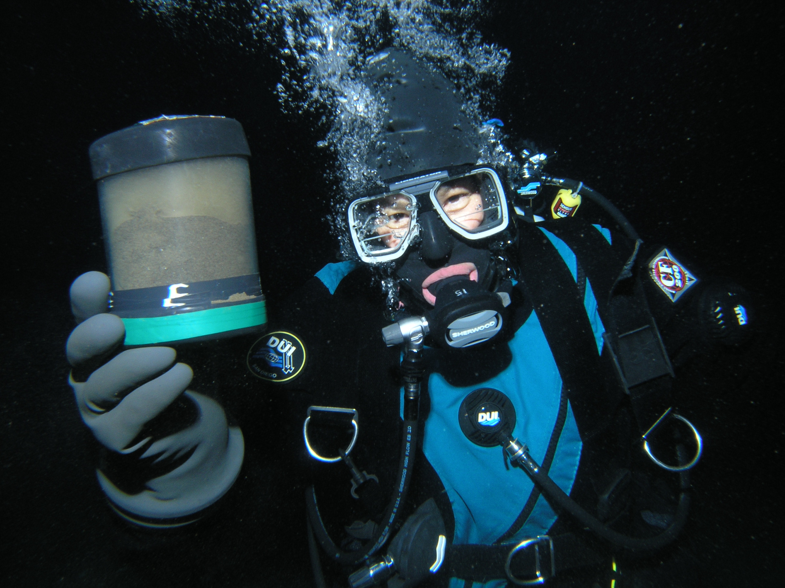 Dr. Stacy Kim shows off one of her cores. McMurdo Station, Antarctica.