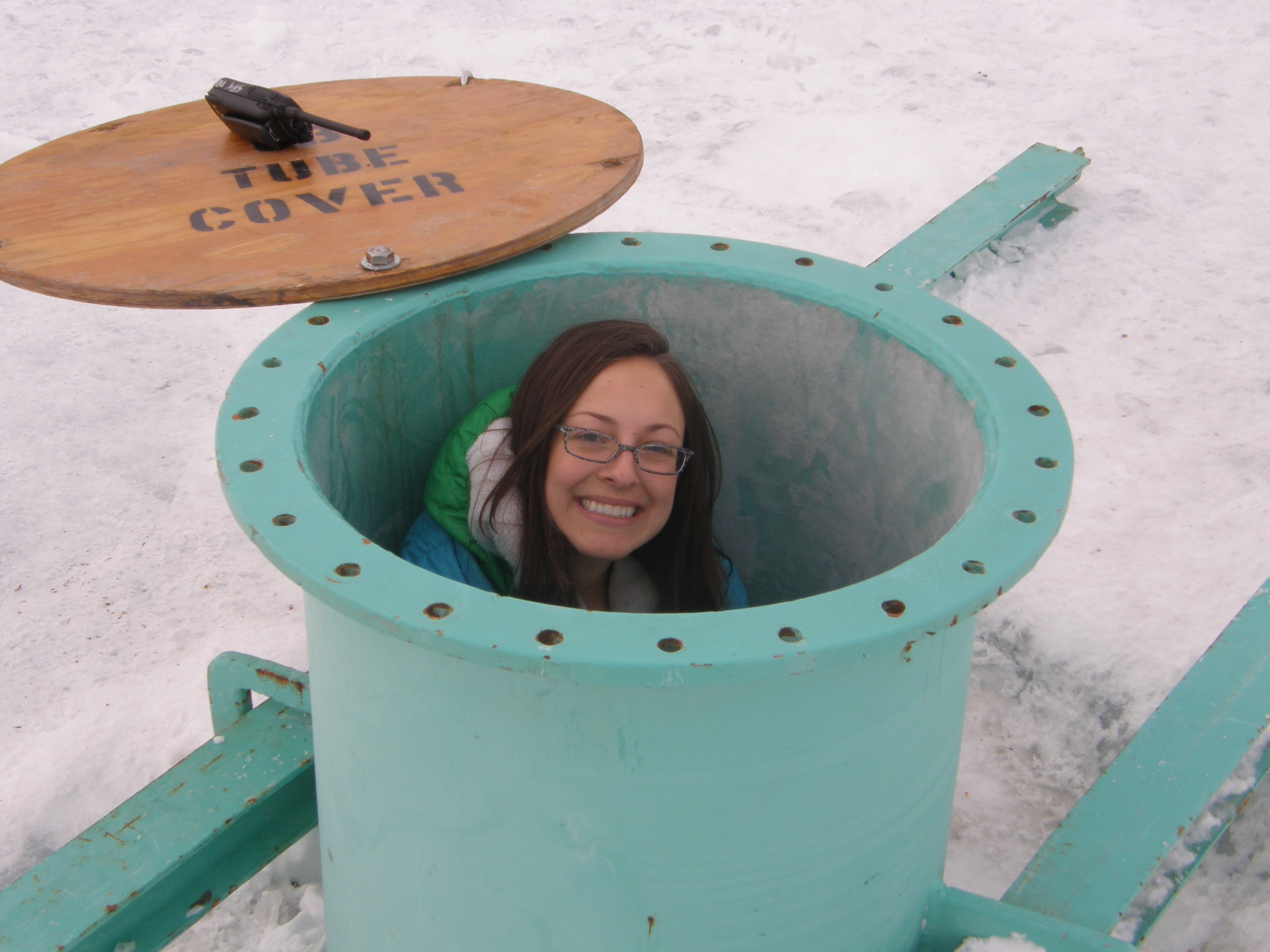 Stephanie Guida enjoys her time in the Observation Tube. McMurdo Station, Antarctica.