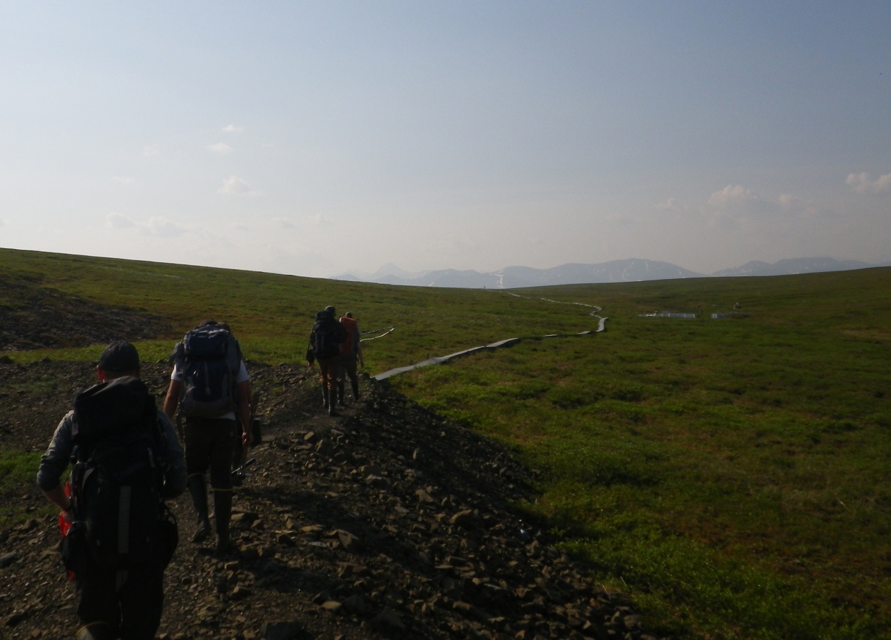 The team hikes to a site at Imnavait, near Toolik Field Station, Alaska.