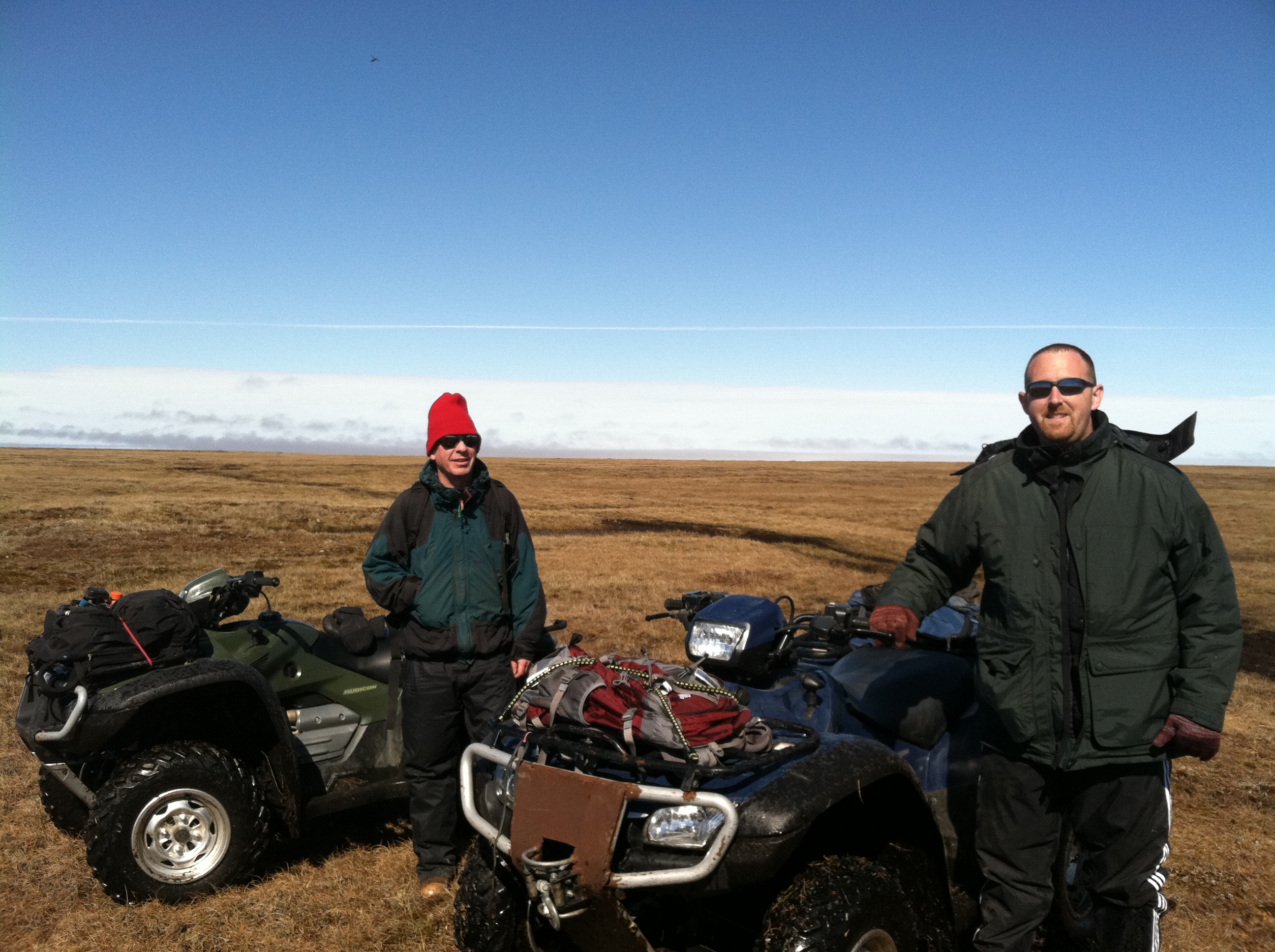 Ted Raab and Jim Miller after riding on the ATVs. Barrow, Alaska.