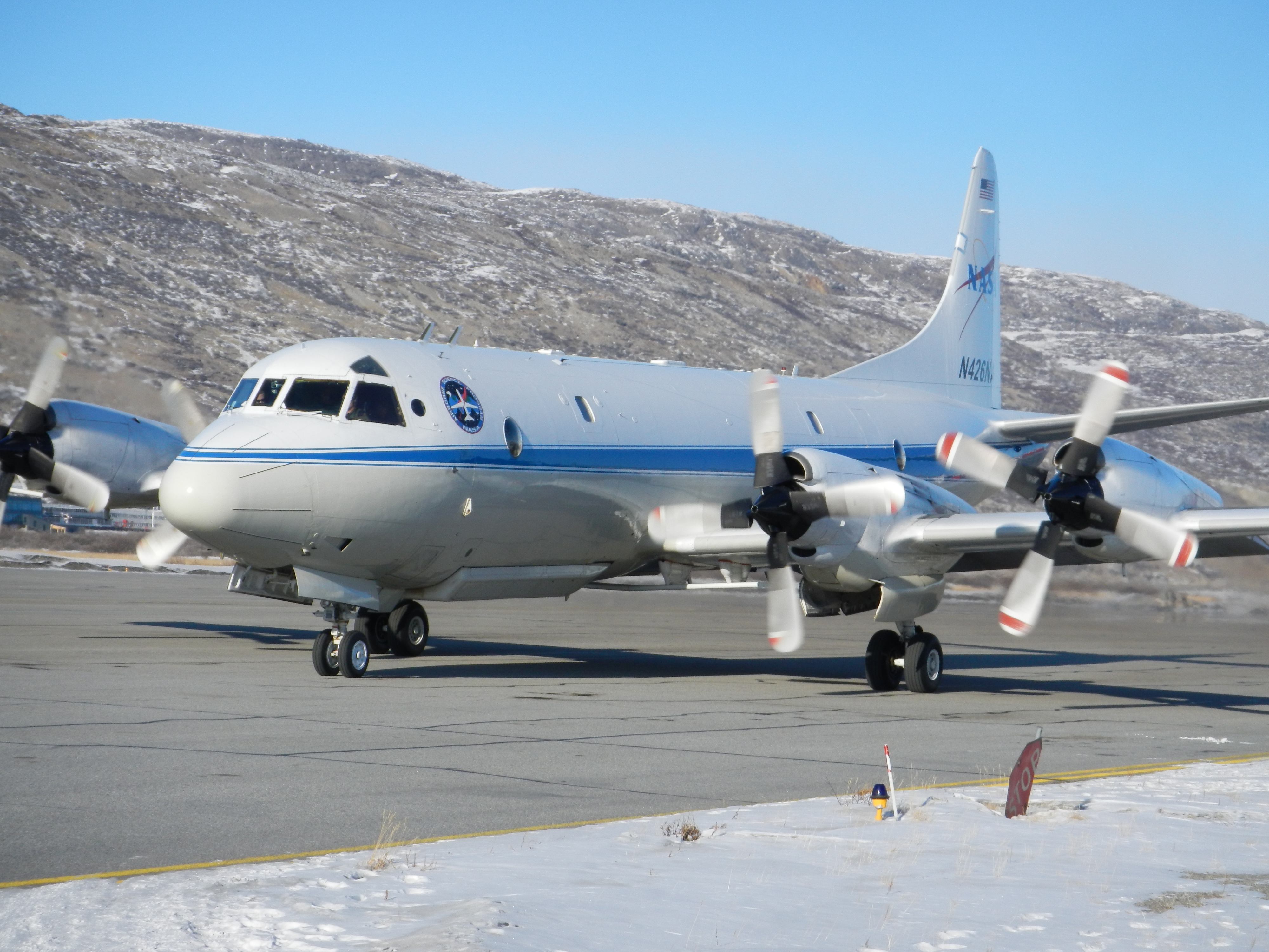 The P-3 Orion that NASA flies in the Arctic for Operation IceBridge. Kangerlussuaq, Greenland.