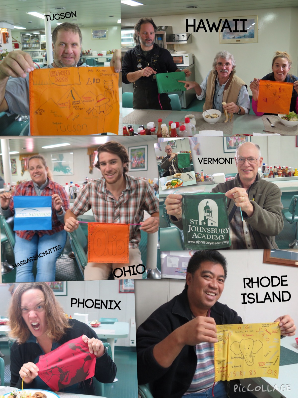 Jillian Worssam: "Every time I get the crew and science party involved with flags, I feel a sense of pride in knowing that we have shared this amazing research with so many!" Aboard the R/V Nathaniel B. Palmer icebreaker.