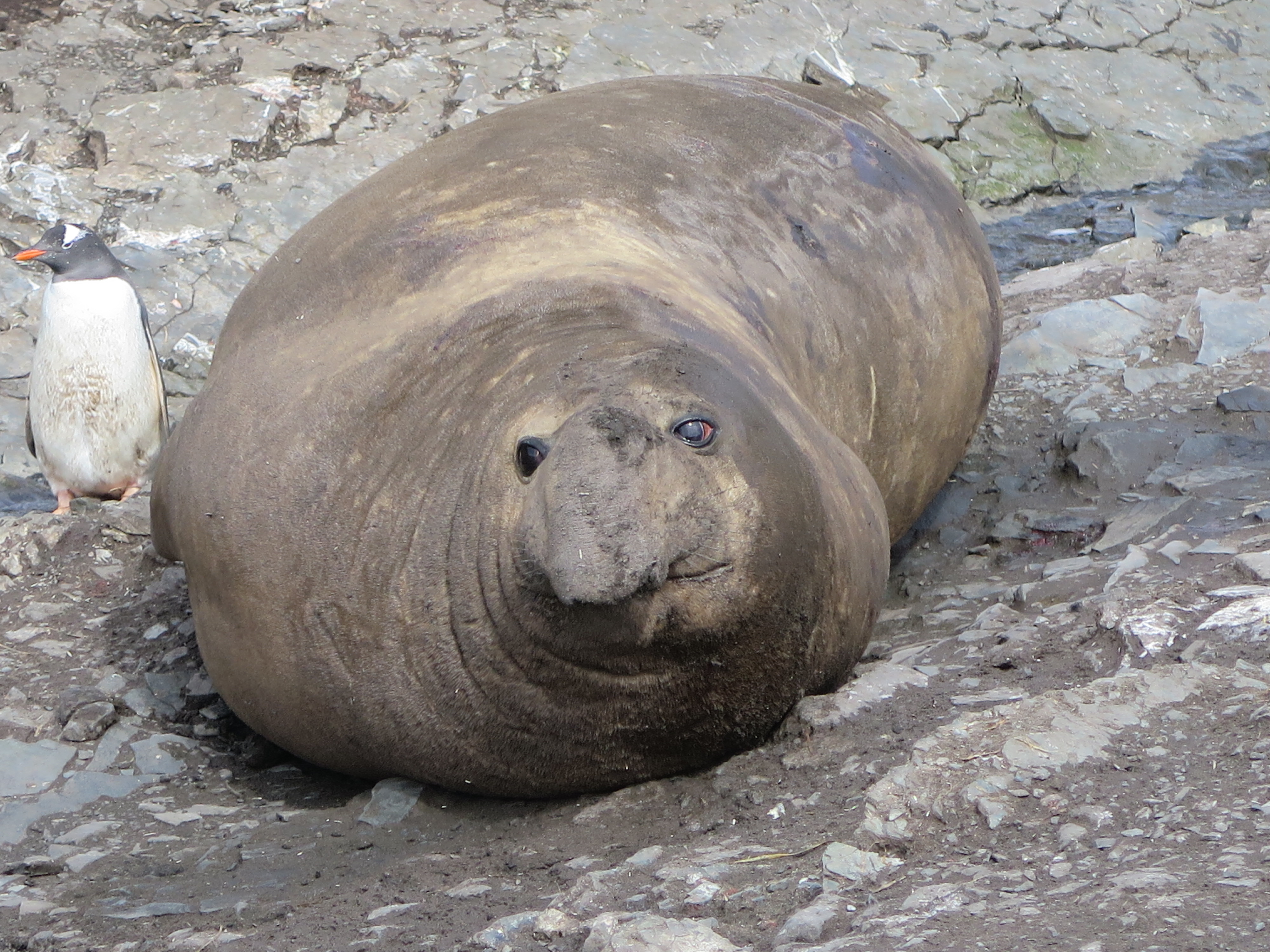 An elephant seal on a beach on Annenkov Island, South Georgia.