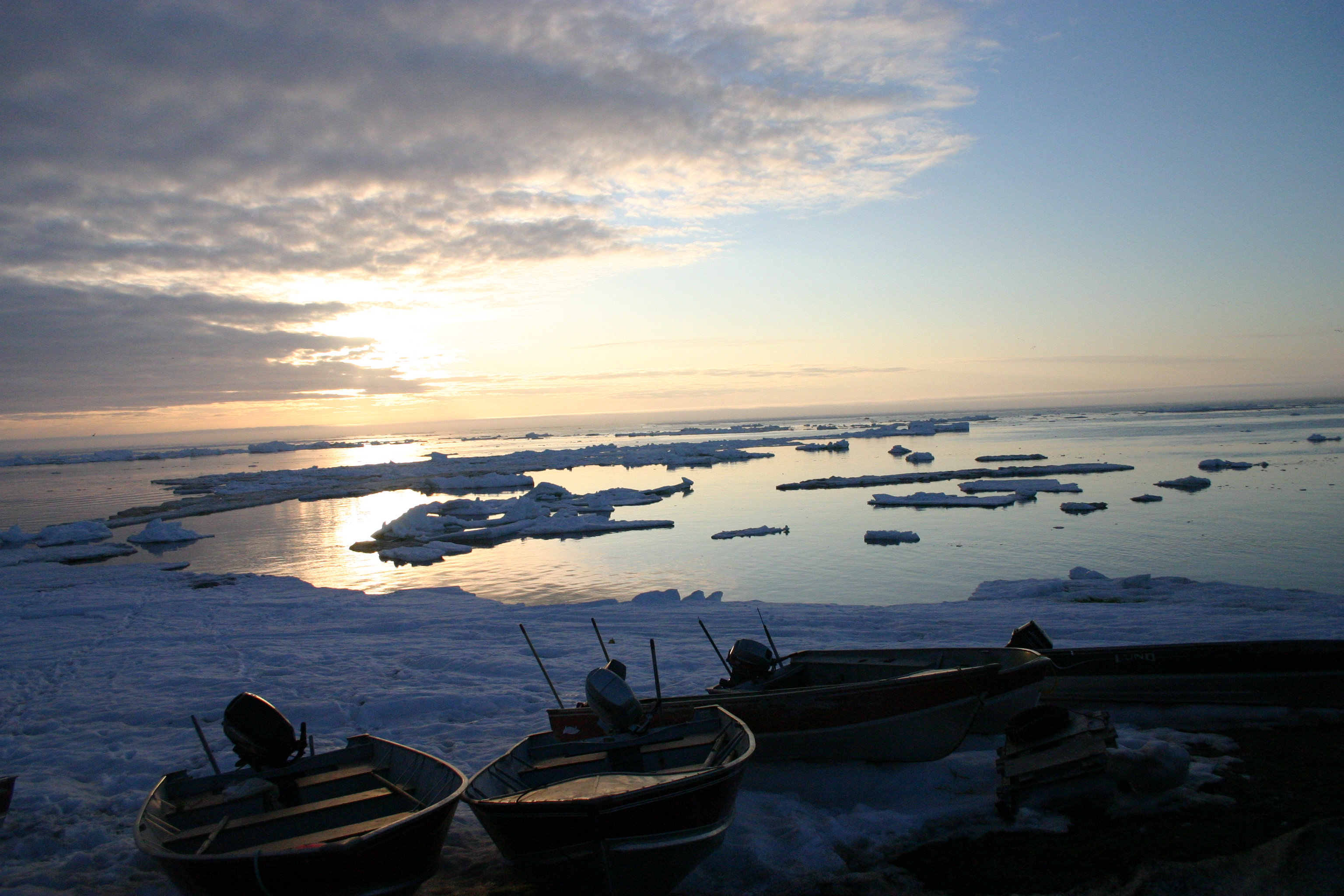 Savoonga boats at sunset. Savoonga, St. Lawrence Island, Alaska.