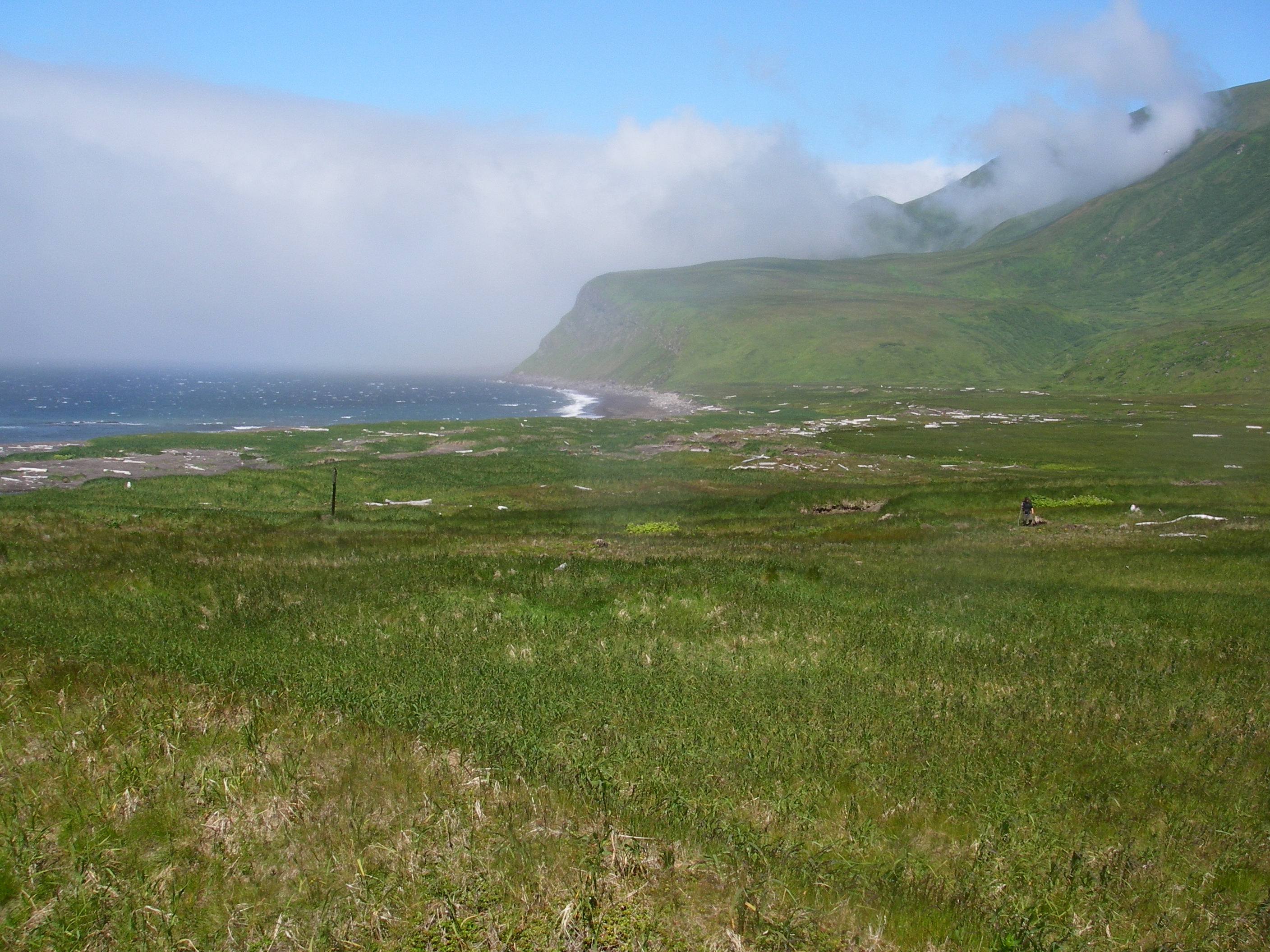 Ainu Bay, Matua, from the side of a hill just to the south of the bay. Kuril Islands, Russia.