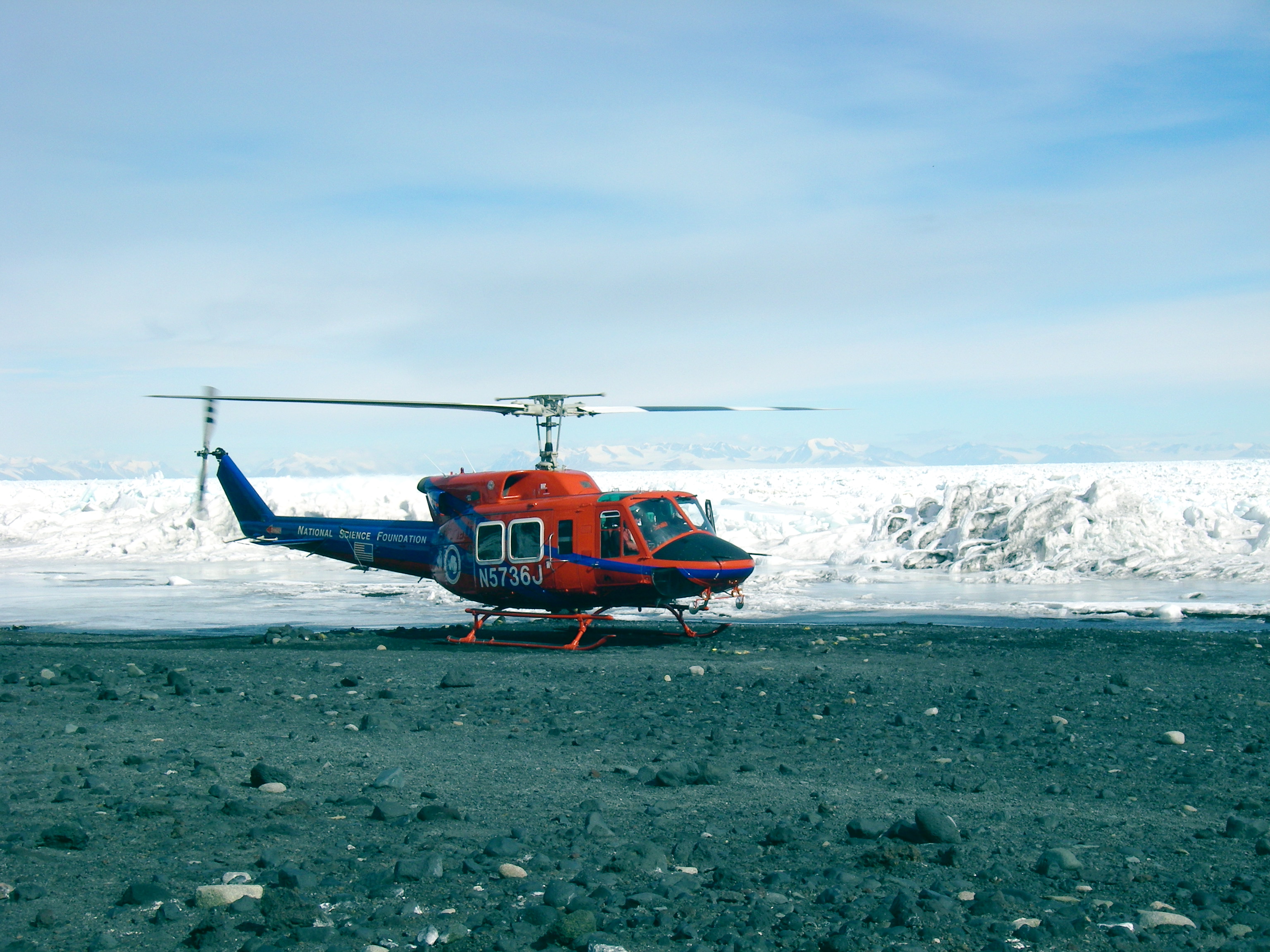 The NSF helicopter that took the team back to McMurdo Station. Cape Bird, Antarctica.