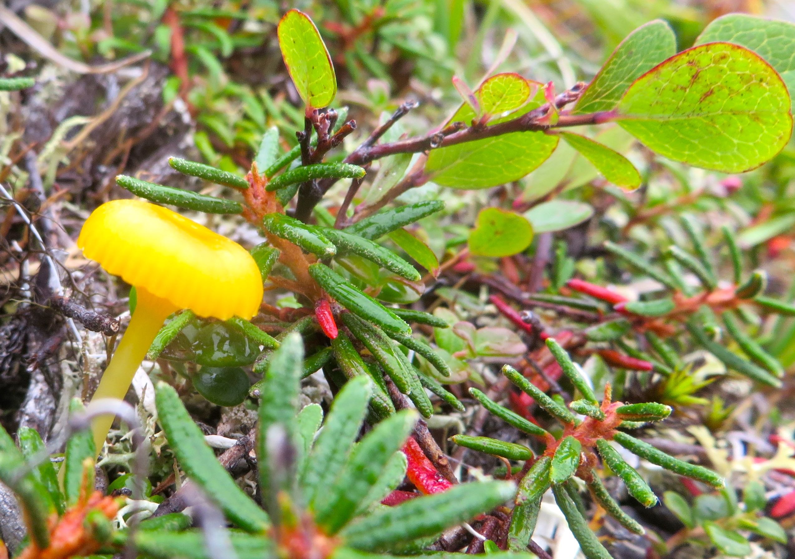 Karen Temple Beamish: "Don't know its real name, but what a dainty little yellow mushroom." At the CiPEHR site, near Healy, Alaska.