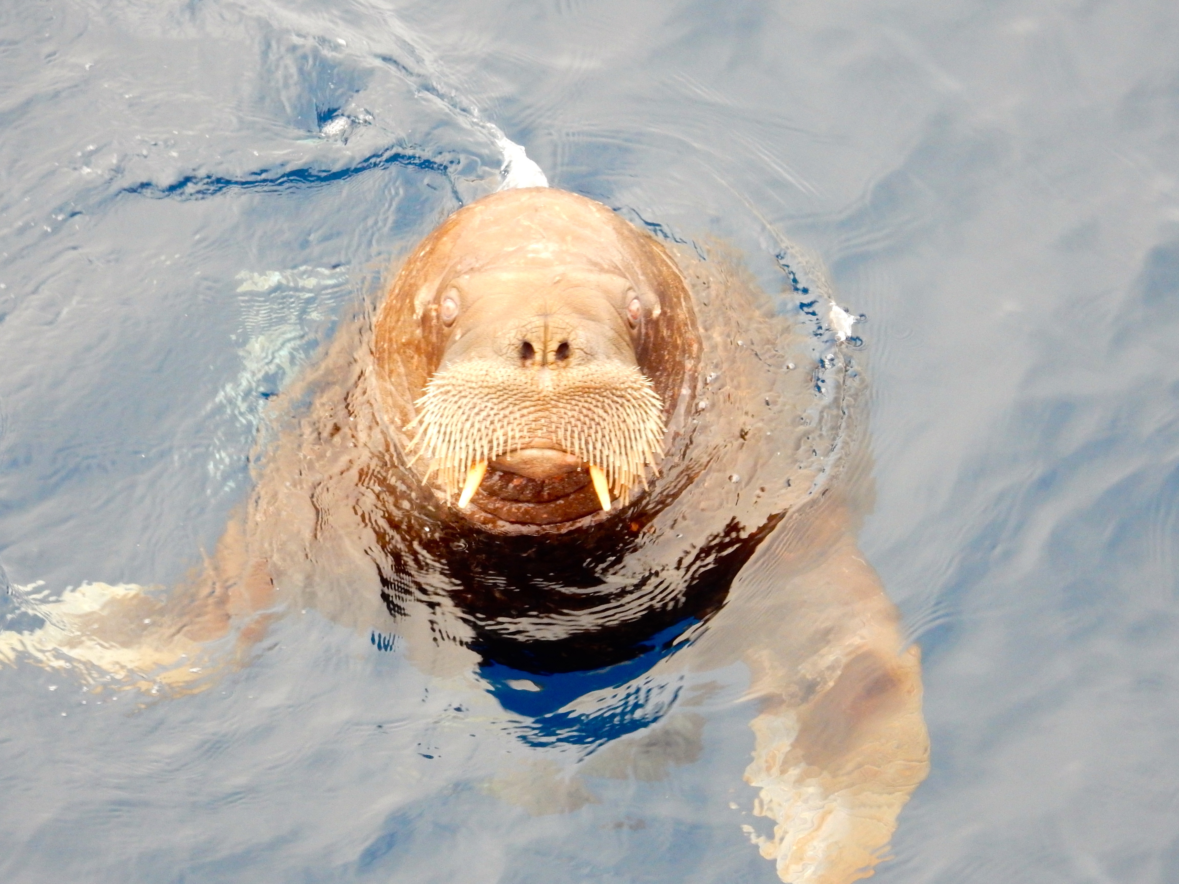 A curious juvenile walrus visits the USCGC Healy icebreaker in the northern Chukchi Sea.