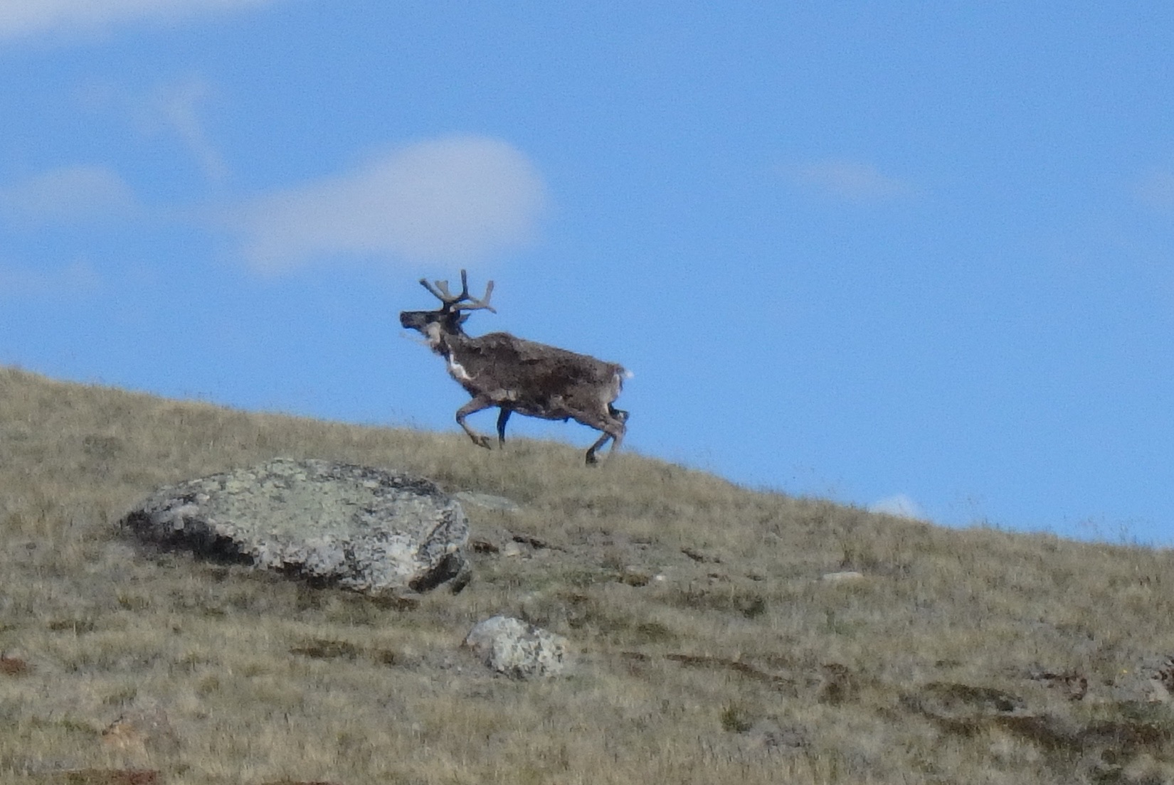 A caribou trots up a hill near Kangerlussuaq, Greenland.