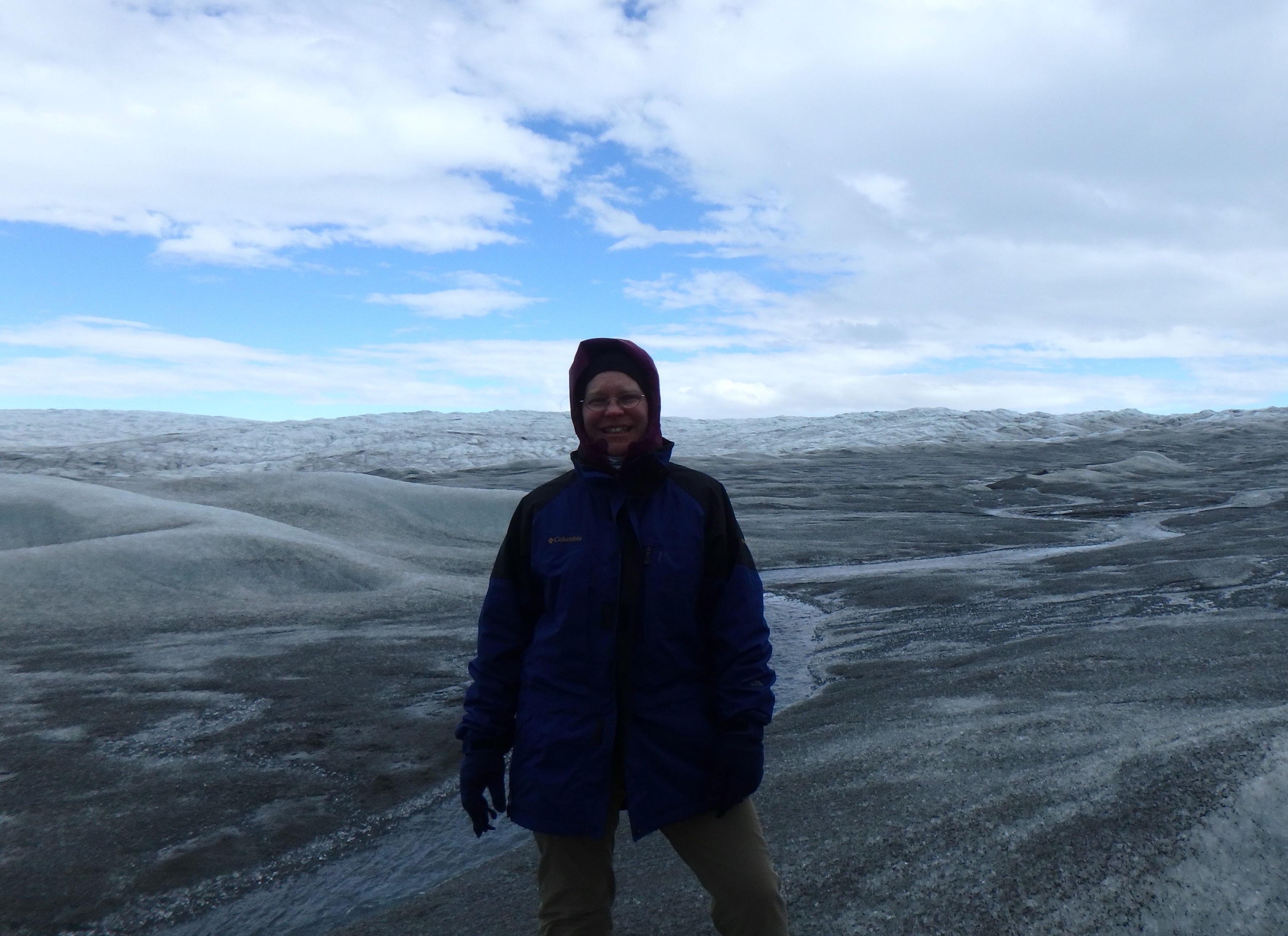 Anne Schoeffler stands on the Greenland Ice Sheet near Kangerlussuaq, Greenland.