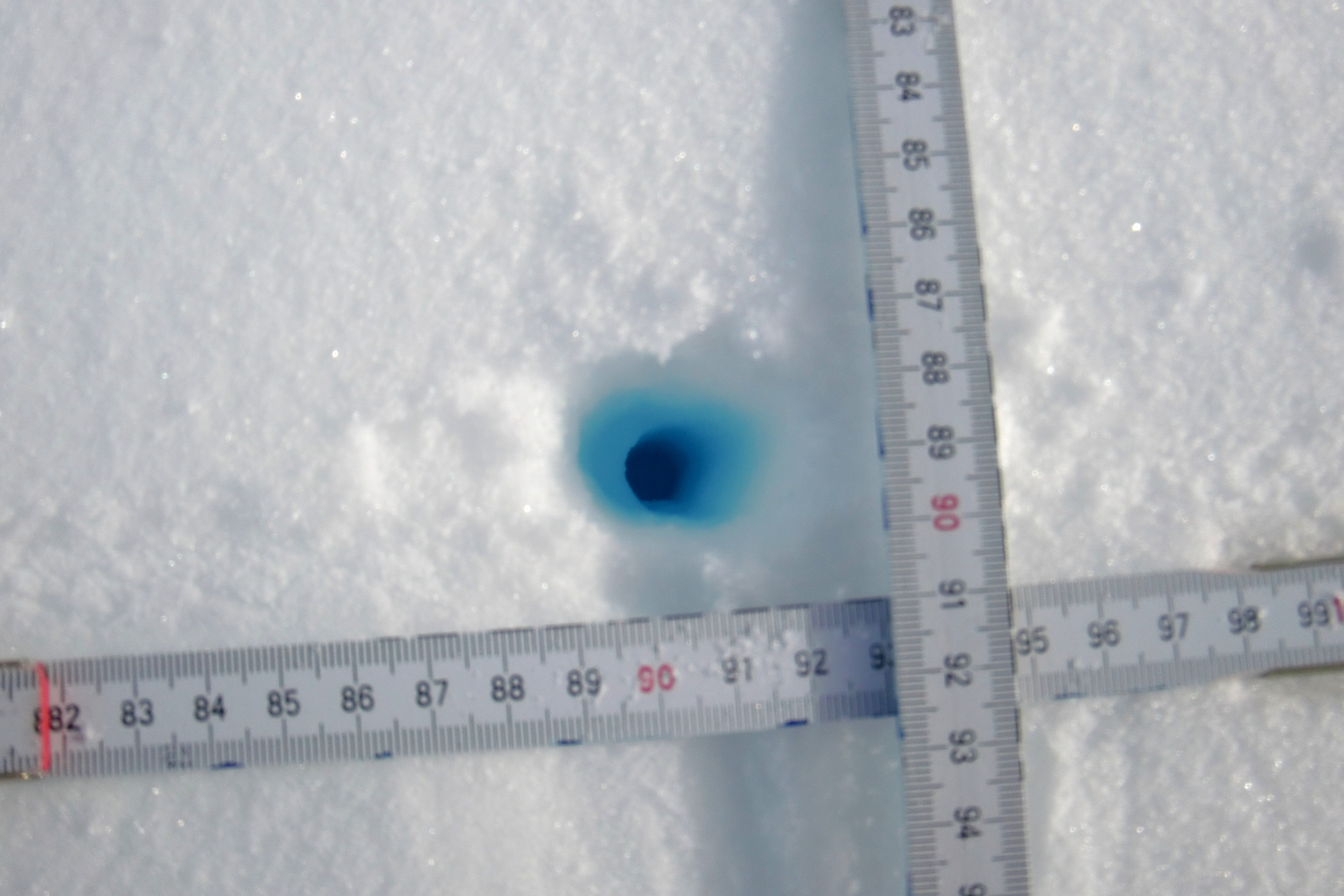 Armando Caussade: "The measurements we did left a number of holes, and the ice inside looked blue." Amundsen-Scott South Pole Station, Antarctica.