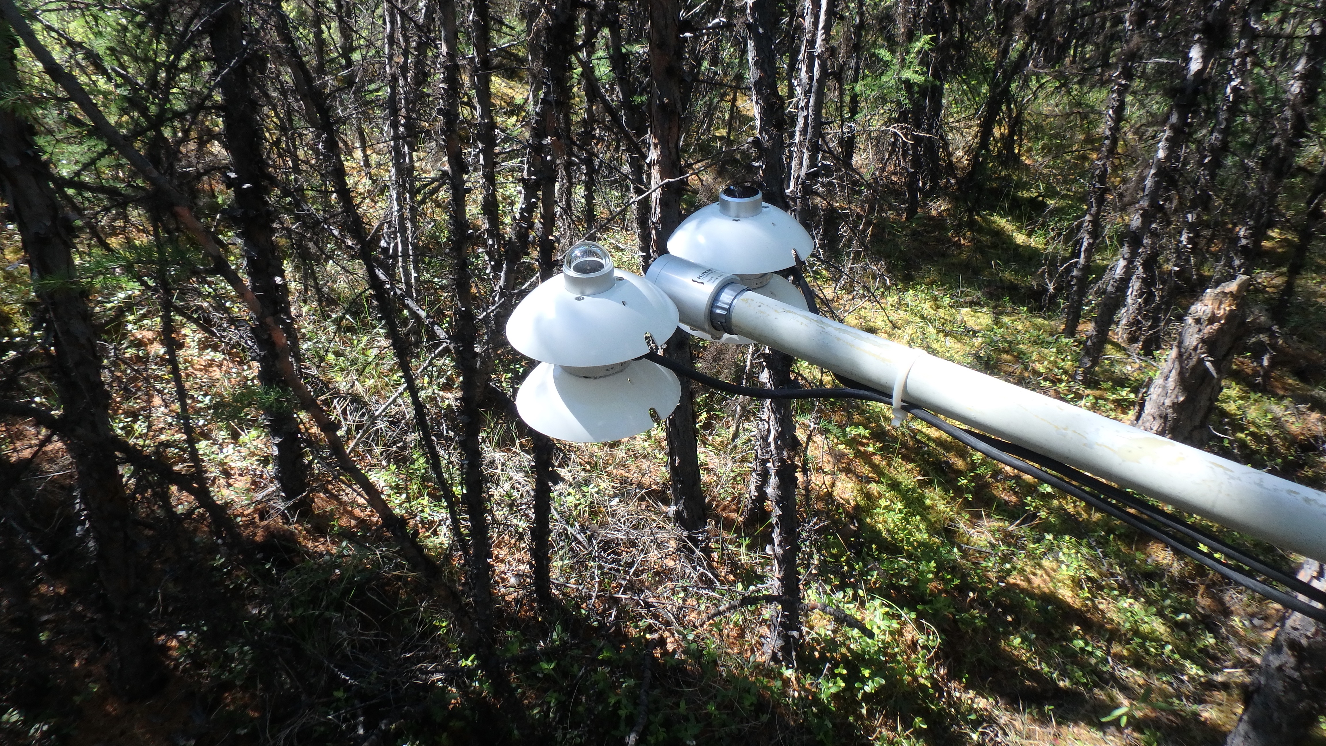 A close-up of the radiometer. This one is looking at the understory of the forest at one meter off the ground. Outside of Cherskiy, Russia.