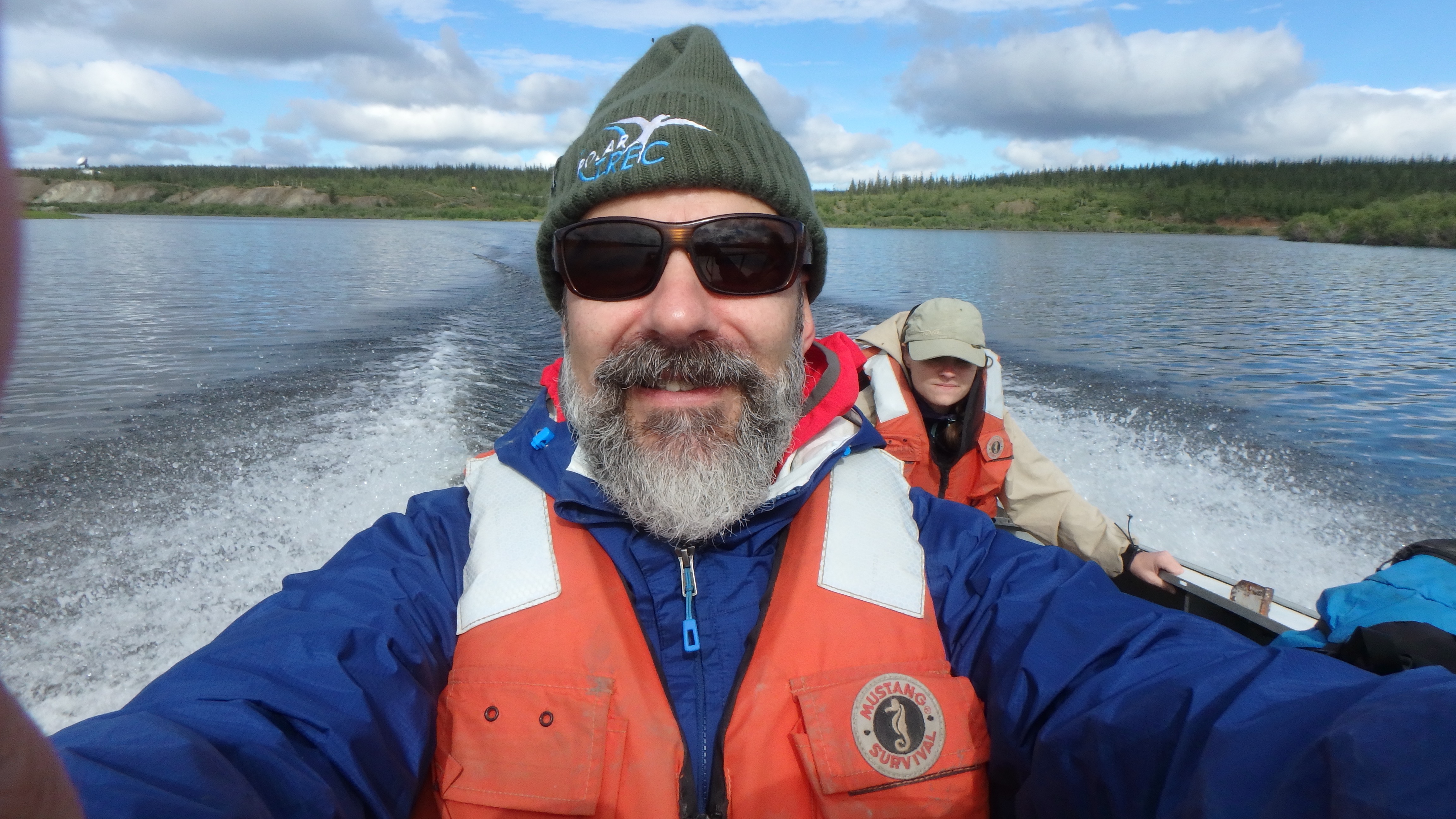 Stan Skotnicki enjoys the boat ride to the team's field site. Cherskiy, Russia.
