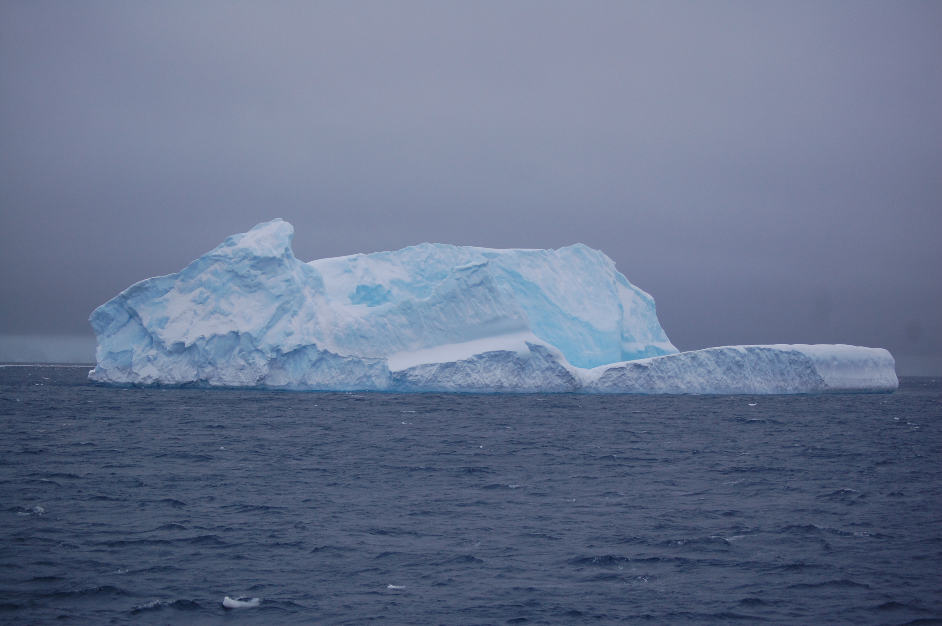 Large chunks of ice can break off glaciers and become floating icebergs. Generally, 80% of the iceberg is still below the surface of the water. Aboard the Nathaniel B. Palmer.