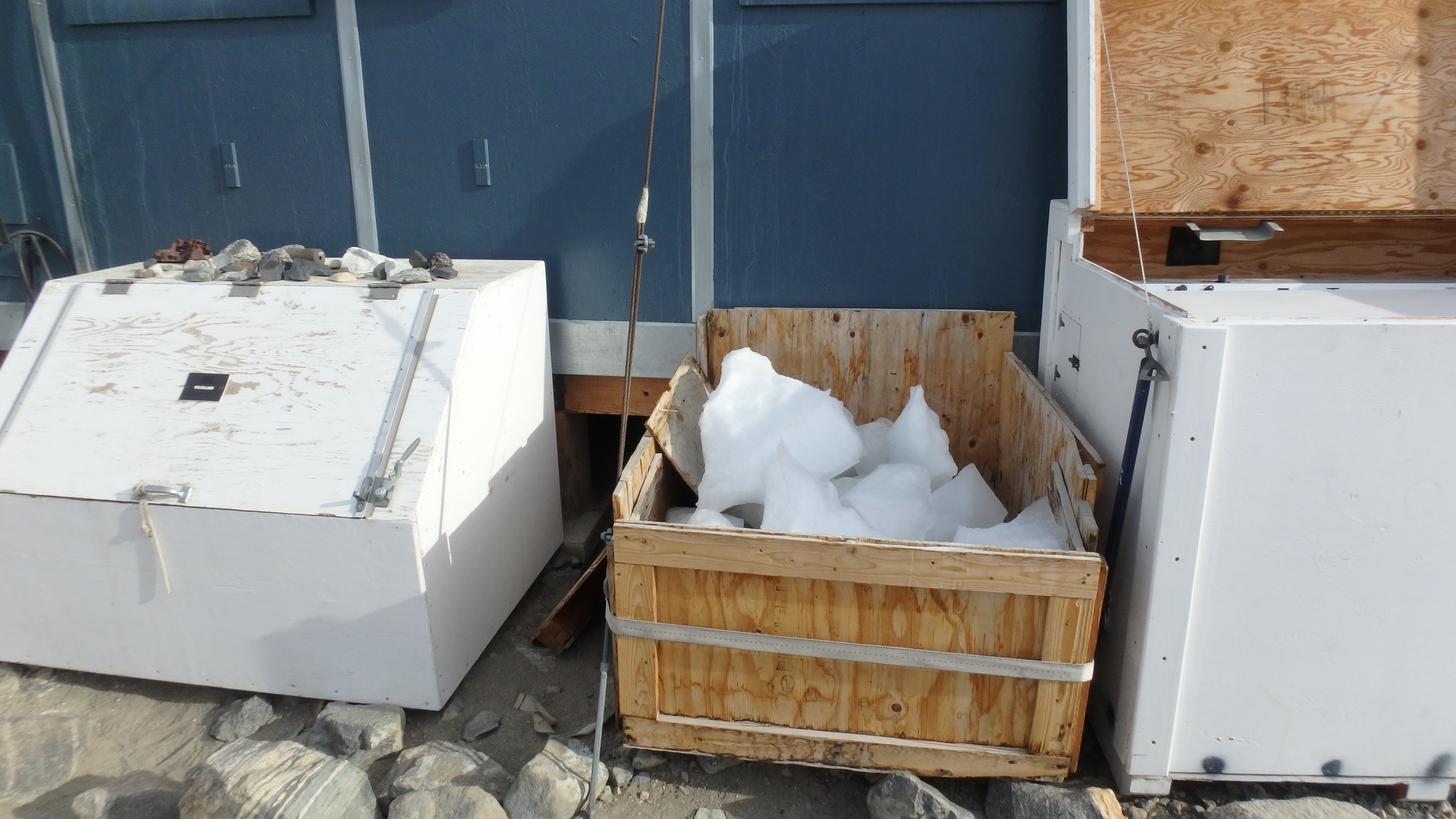 Ice from the Canada Glacier is melted for drinking water at Lake Hoare Camp, Taylor Valley, Antarctica.