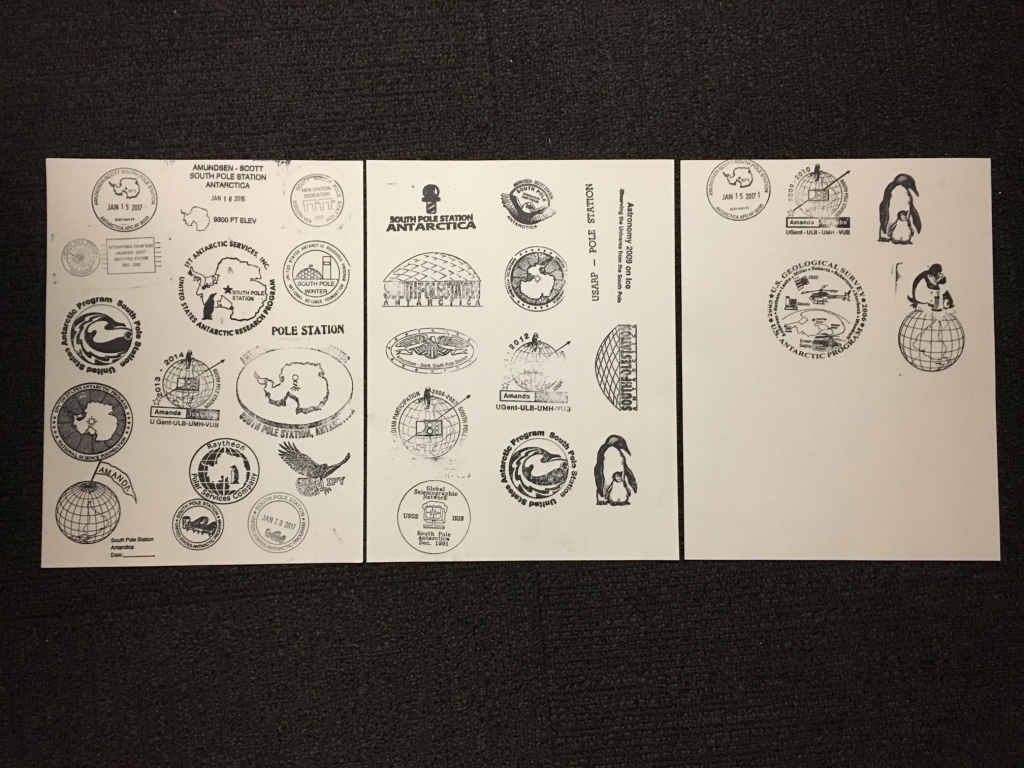 The available stamps at the South Pole Post Office. Amundsen-Scott South Pole Station, Antarctica.