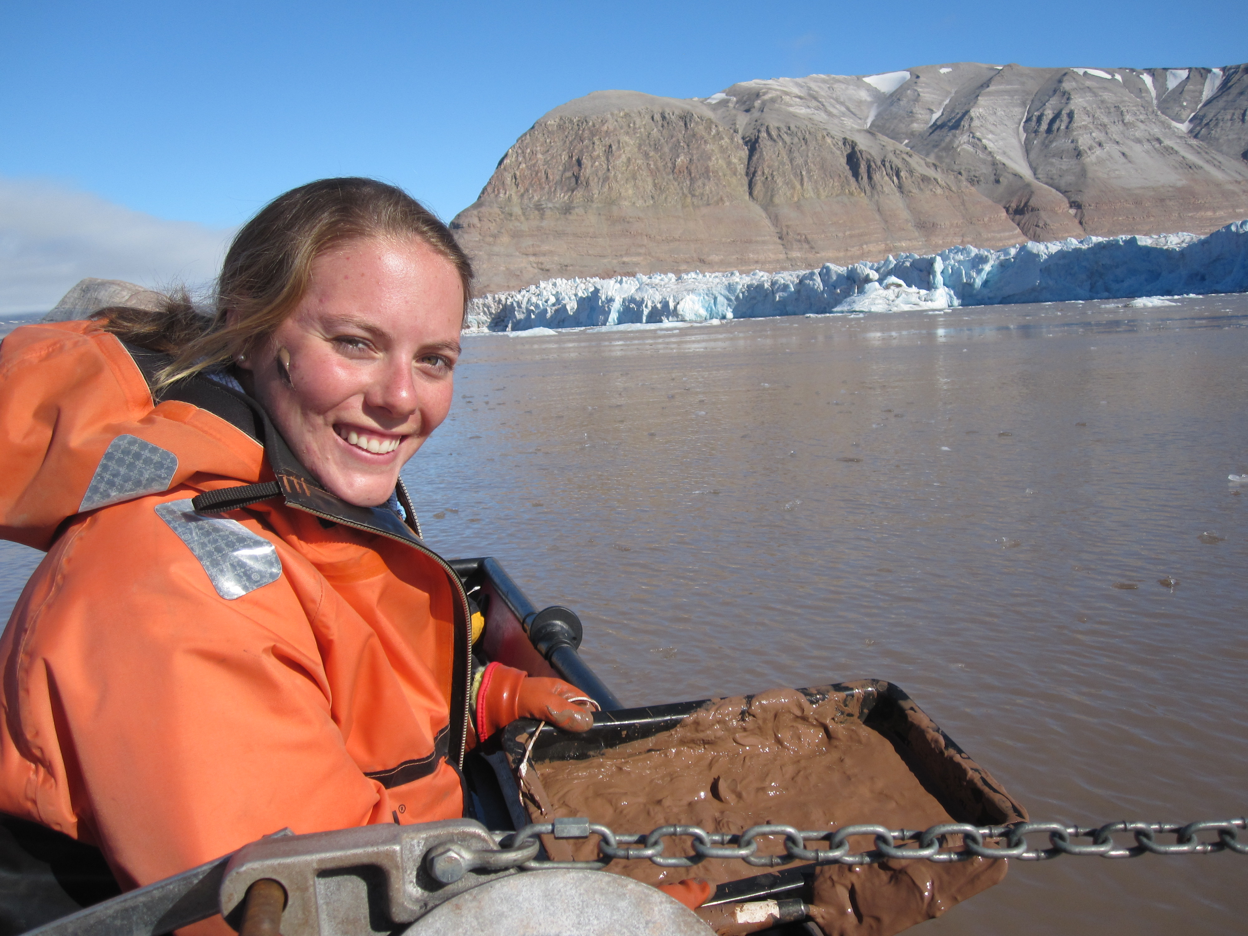 After collecting the sediment, it is Liz Ceperley's job to clean off the trays and tools to get ready for the next sample. Ny Ă…lesund, Svalbard, Norway.