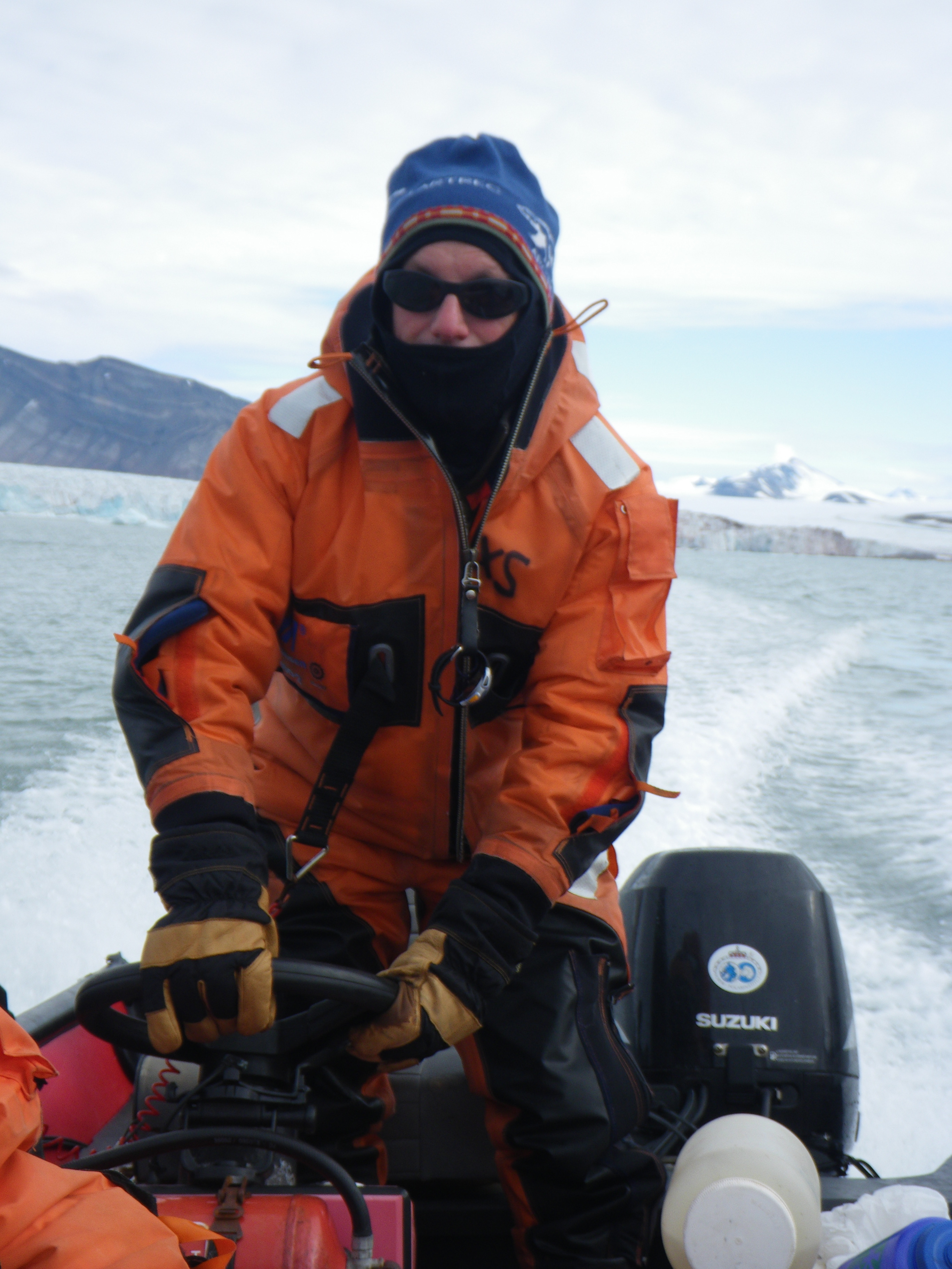 Mark Goldner drives the boat home after a day of research. Ny Ă…lesund, Svalbard, Norway.