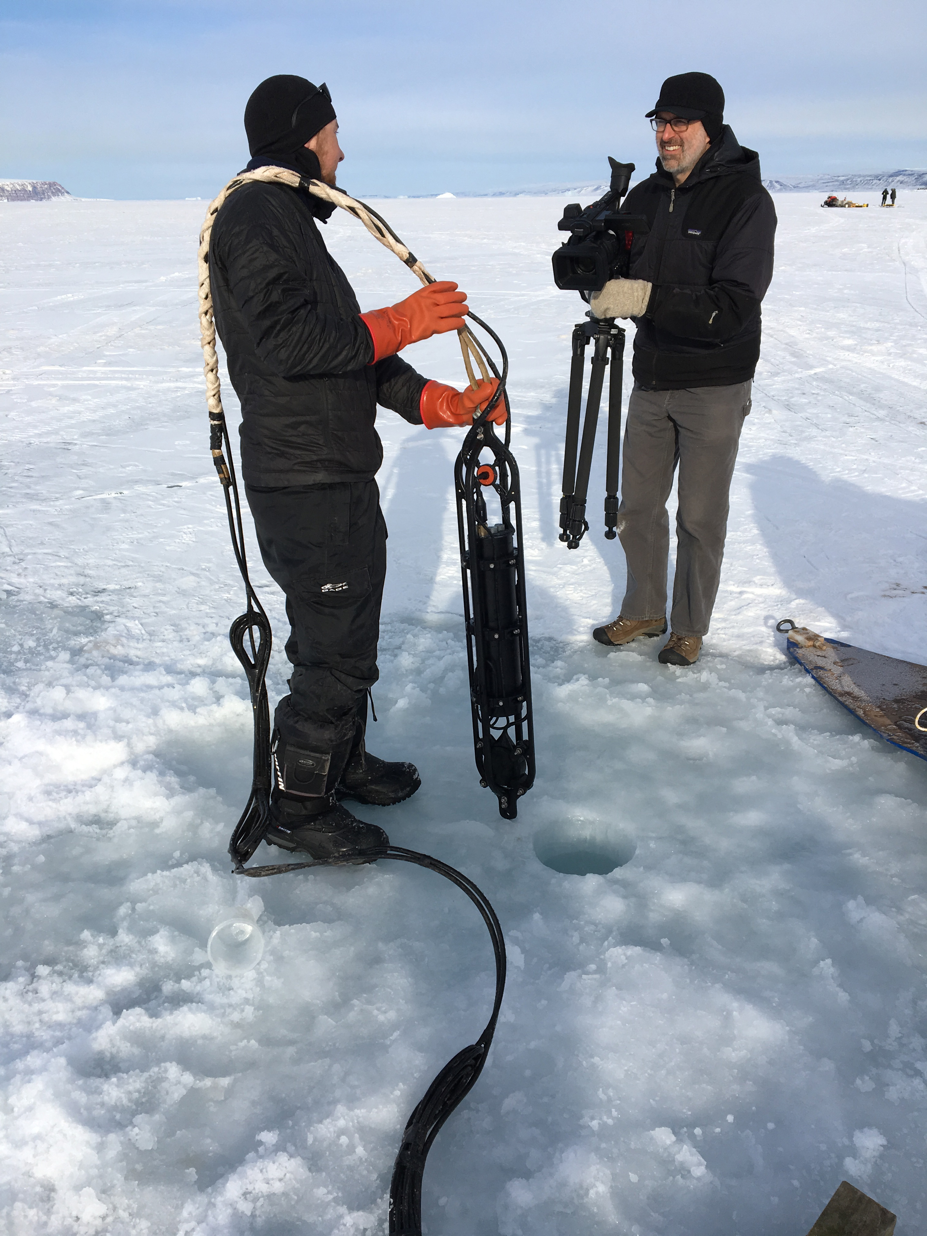 Scientists from the University of Deleware conduct sonar research on the frozen North Star Sea at Thule Air Force Base, Greenland.