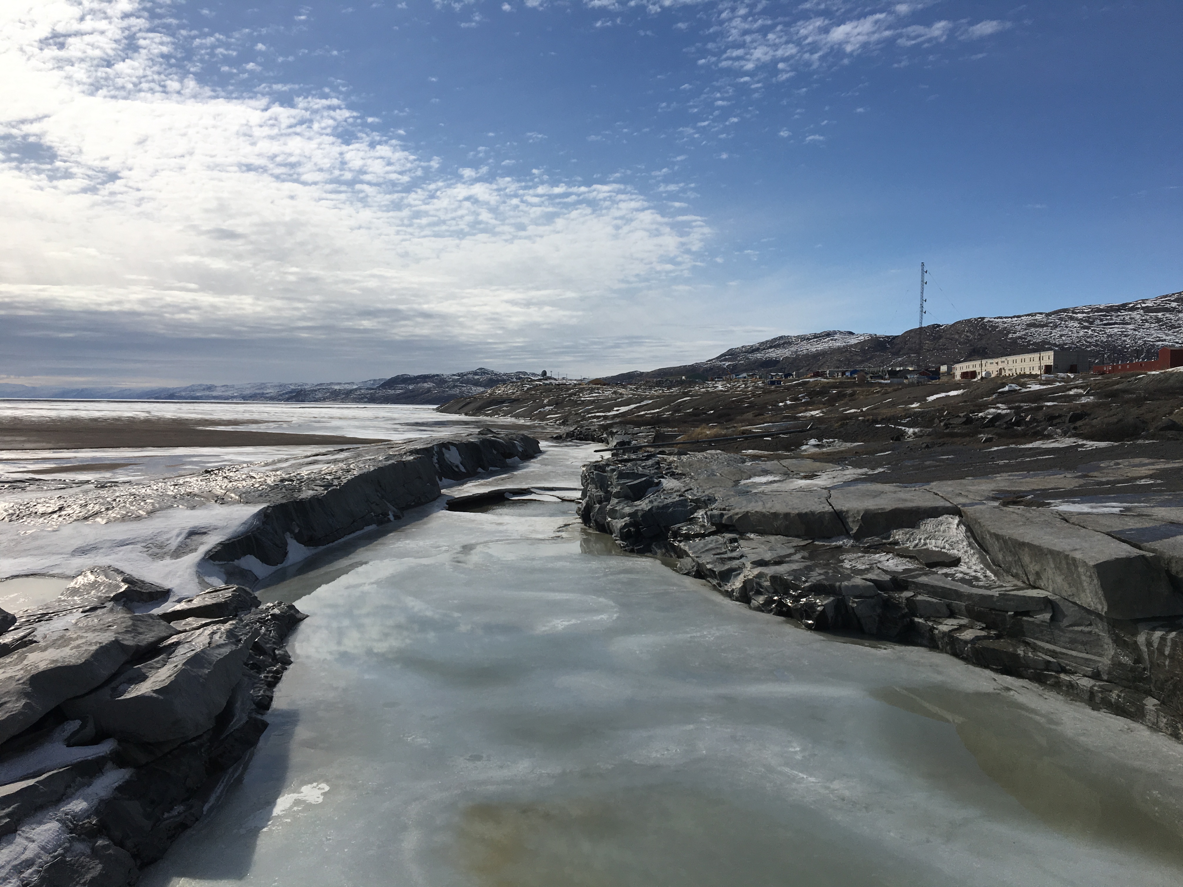 A frozen river starting to melt in late April, near Kangerlussuaq, Greenland.
