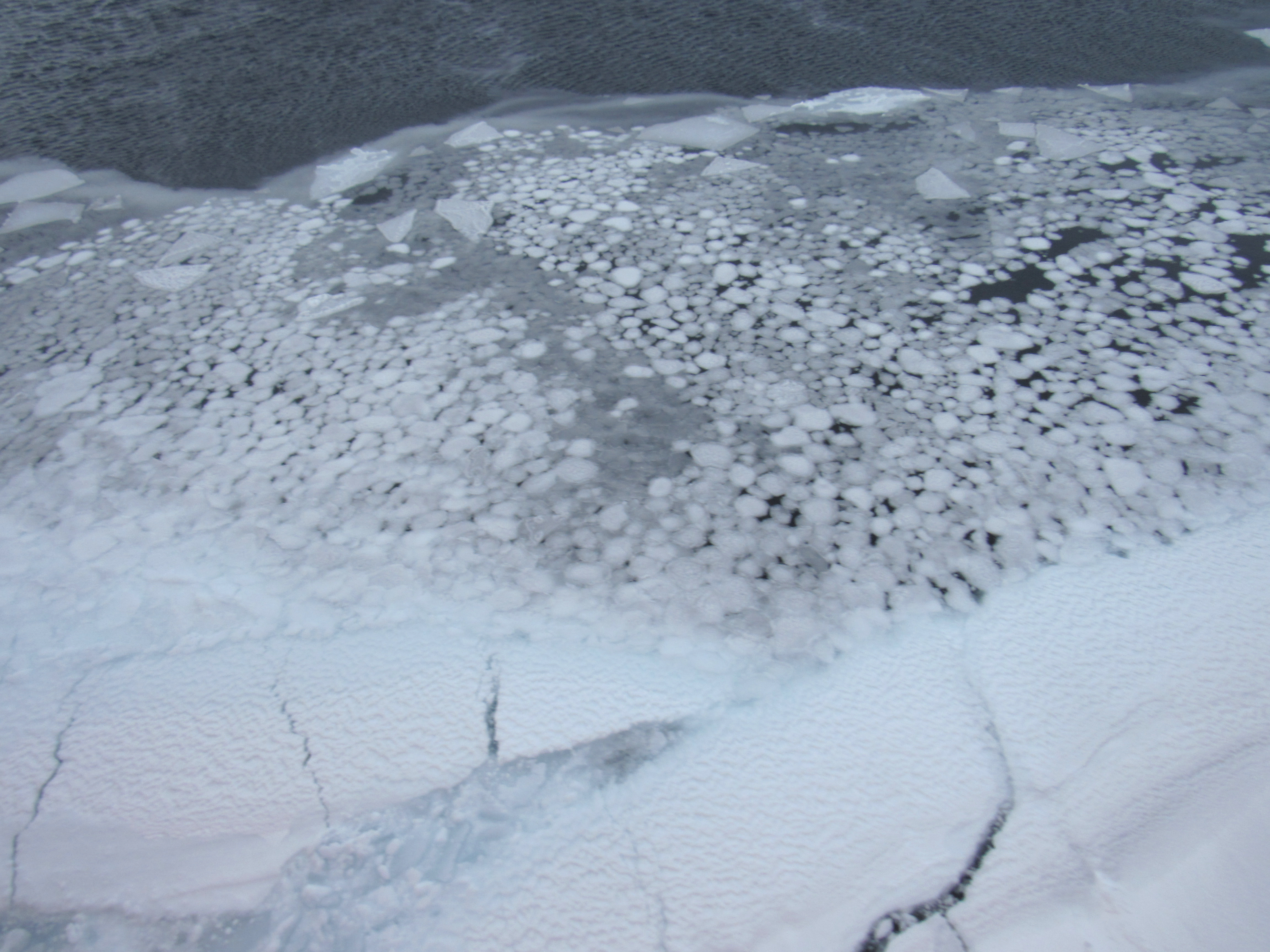 A formation of pancake ice. Aboard the CCGS Louis S. St-Laurent in the Beaufort Sea.