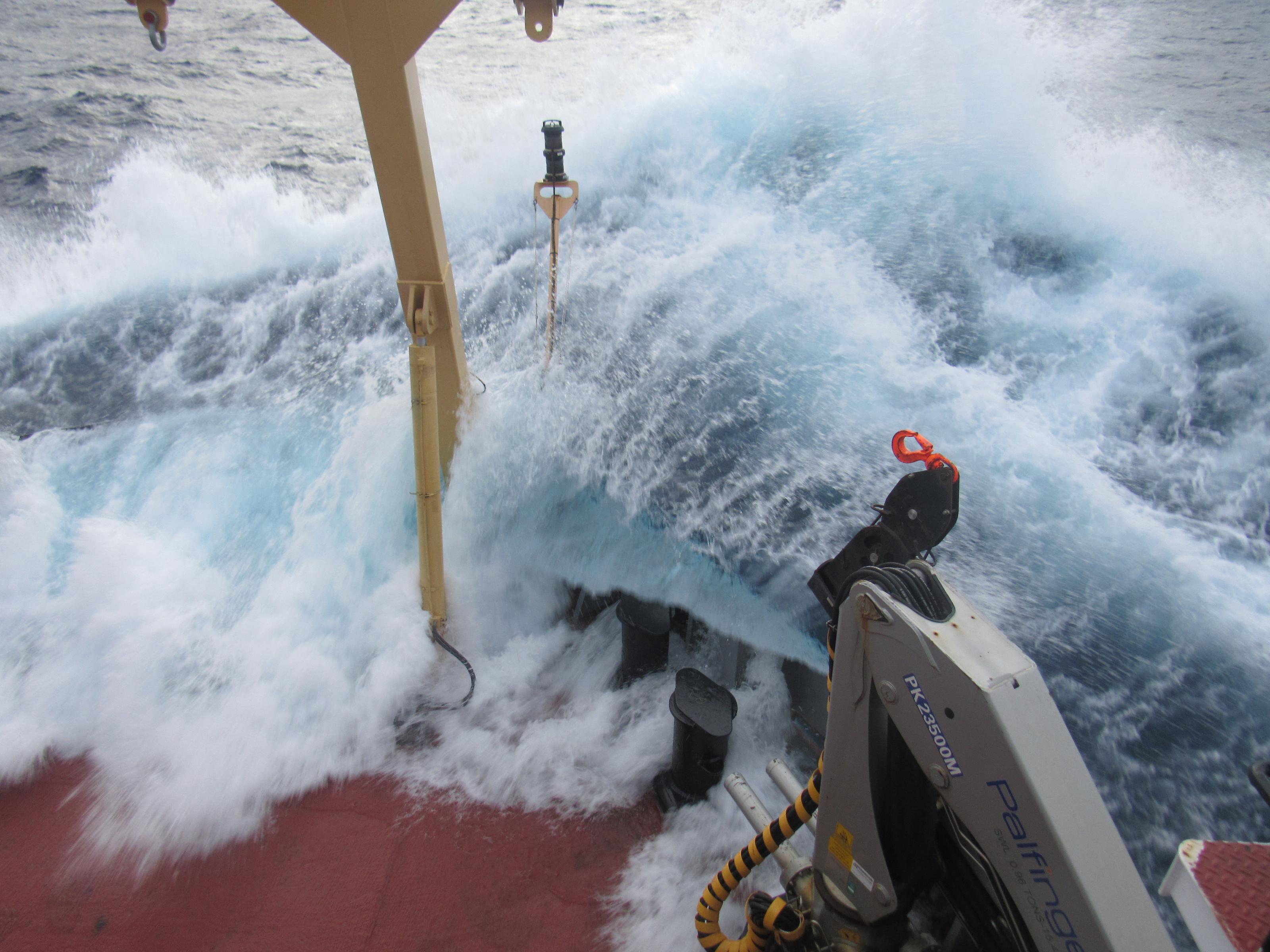 The stern of the ship gets a bath in some big swells. Aboard the CCGS Louis S. St-Laurent in the Beaufort Sea.