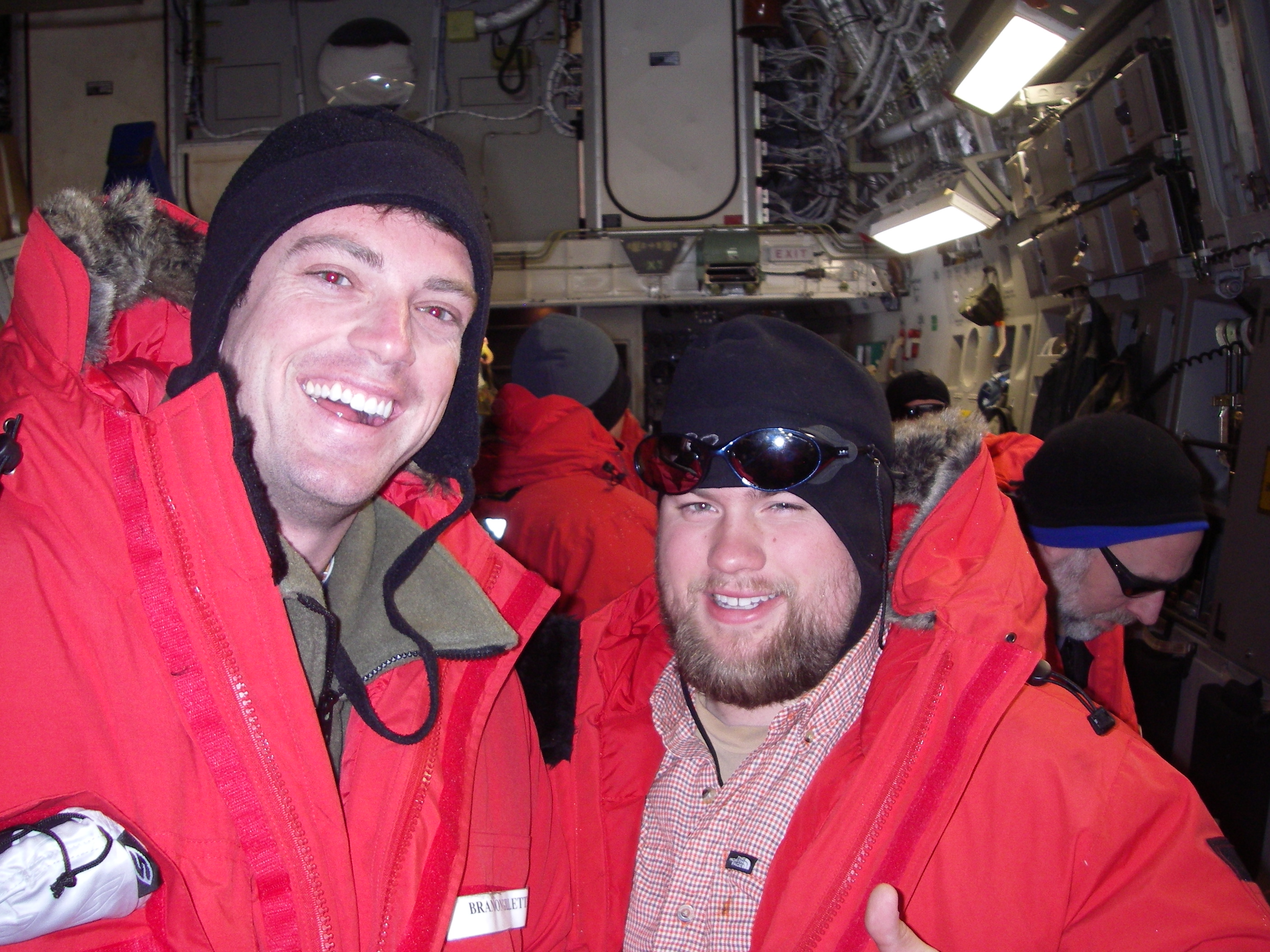 Brandon Gillette and Luke Zoet just before deplaning at McMurdo Station, Antarctica.