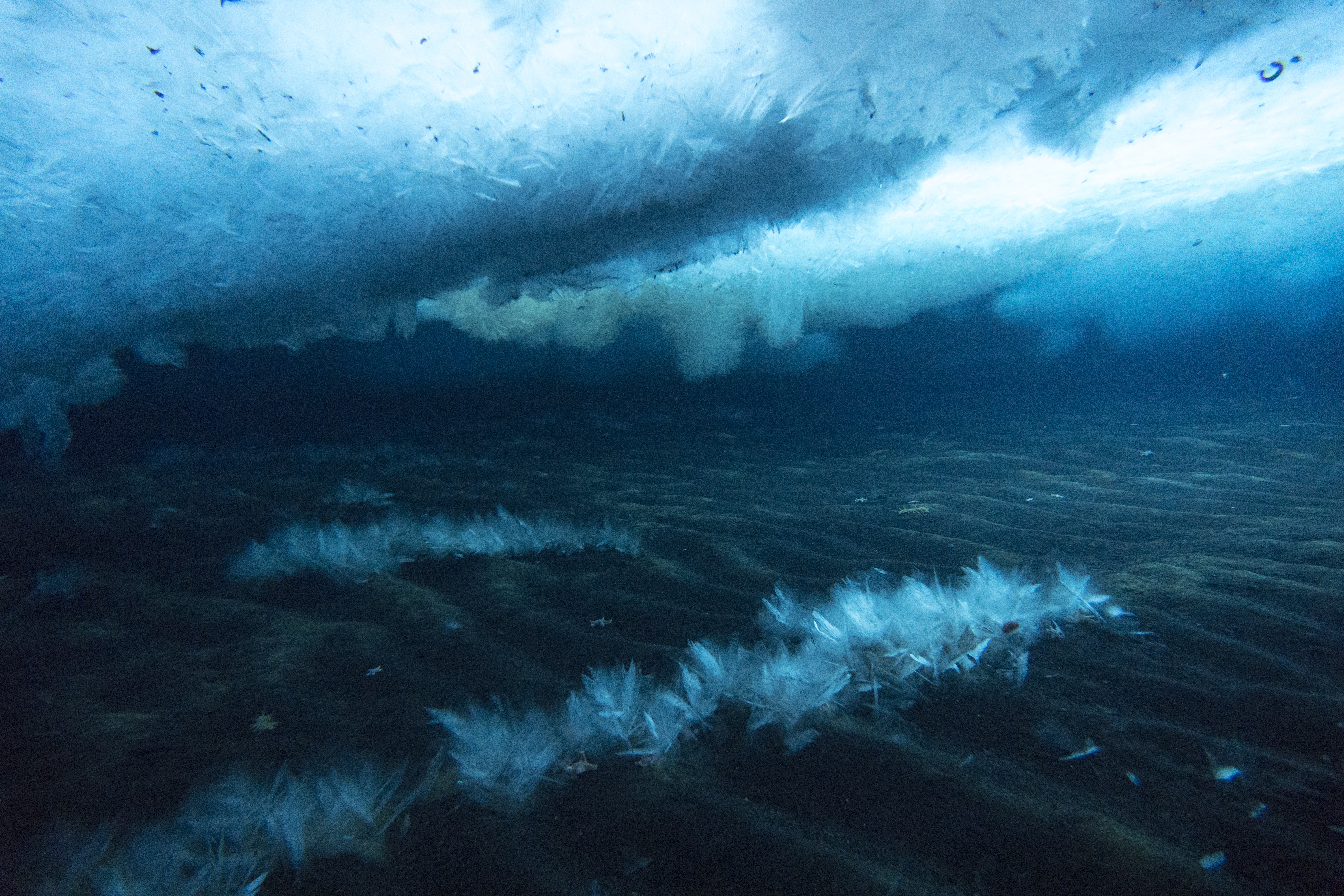 The anchor ice-covered shallow sandy bottom at Turtle Rock, Antarctica.